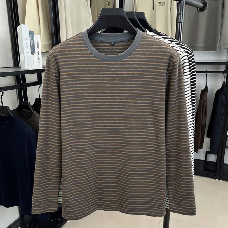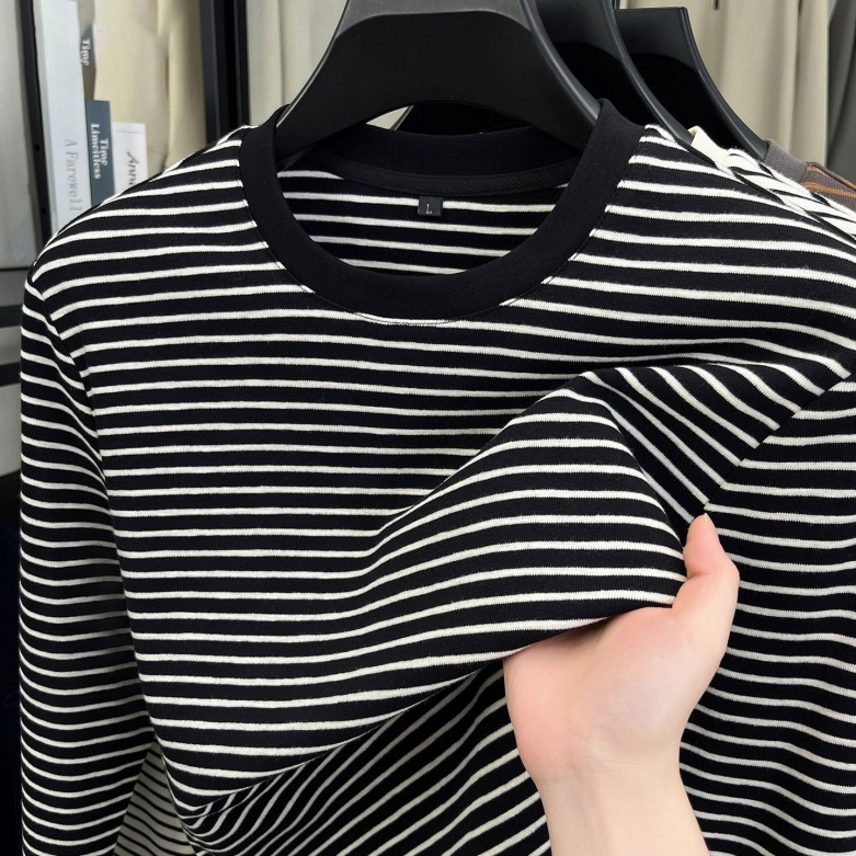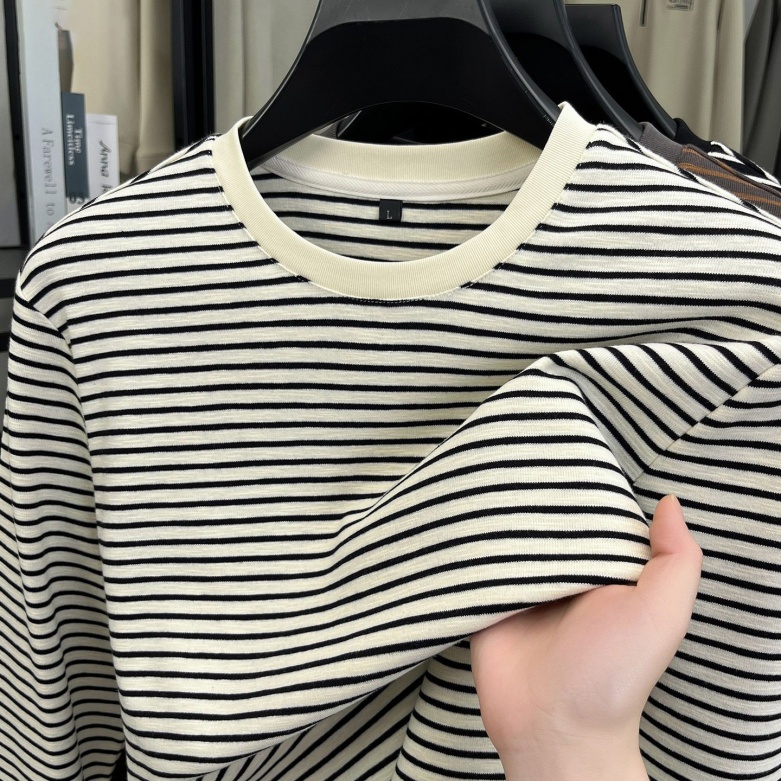 宽松打底衫 经典 大码 T恤2025秋冬新款 上衣男 斑马条纹拼色圆领长袖