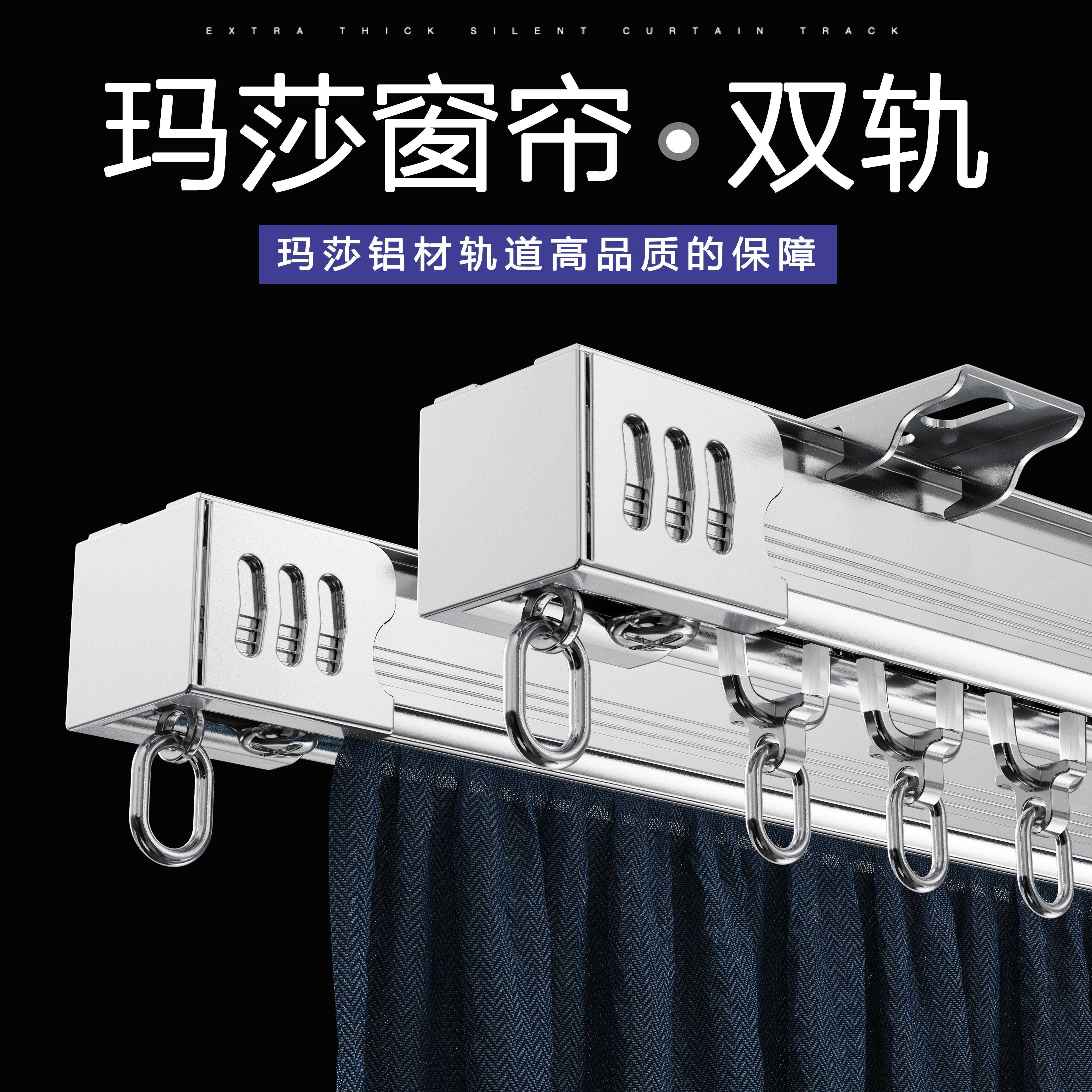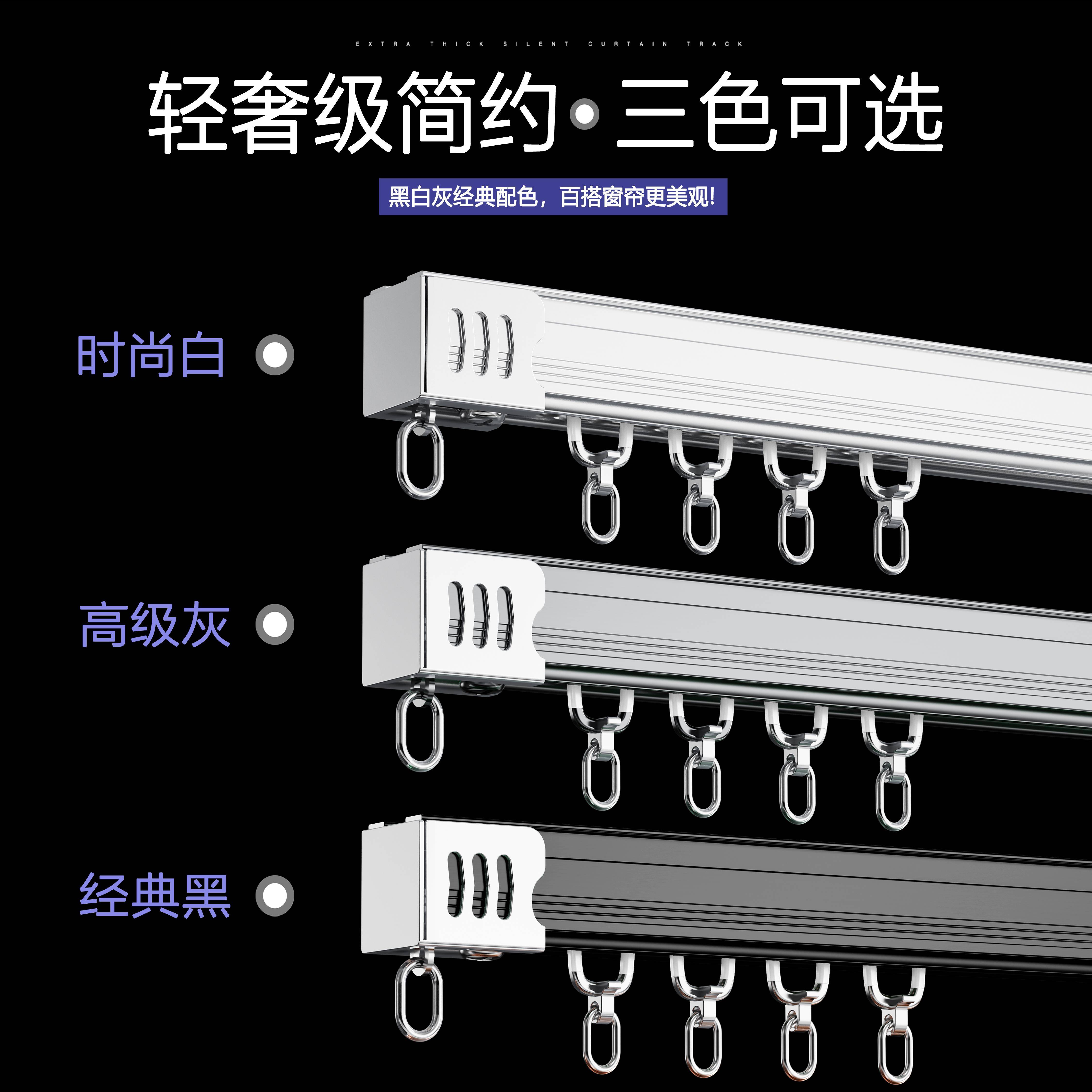 铝合金加厚窗帘轨道滑轮窗帘杆静音直轨滑轨滑道导轨单双罗马杆