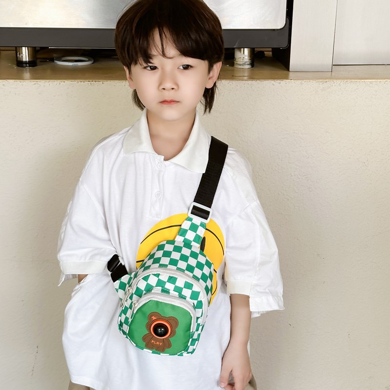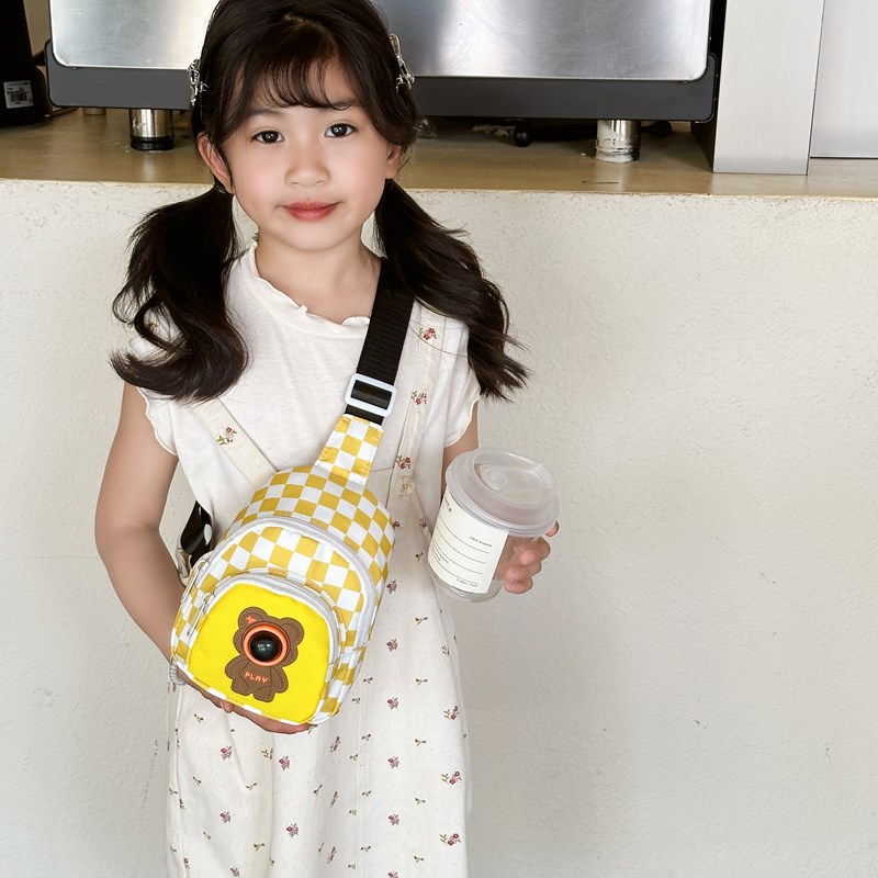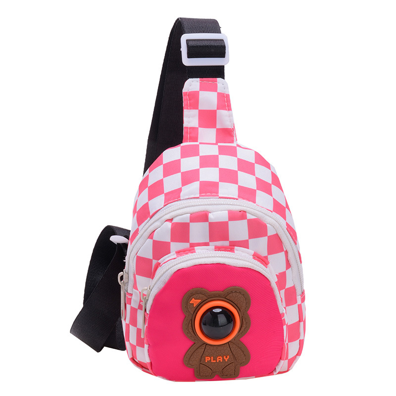 亮灯小熊儿童包网红新款 格子斜挎包宝宝外出轻便小胸包 潮酷时尚