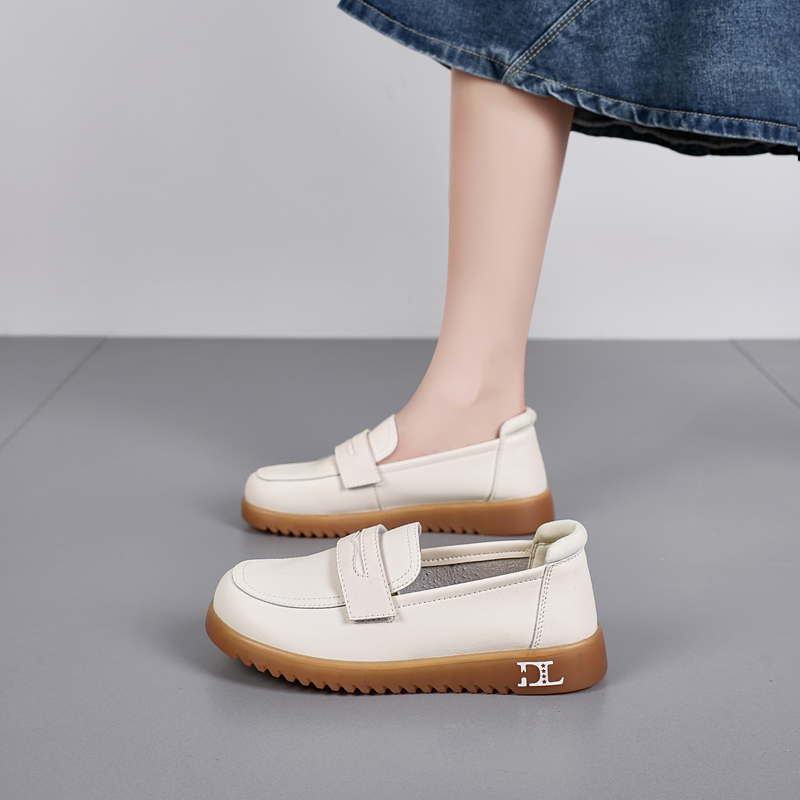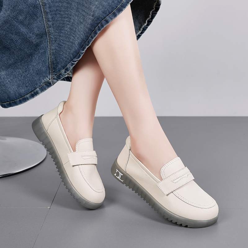 防滑妈妈乐福鞋 真皮豆豆鞋 41到43休闲皮鞋 大码 女春秋软底孕妇单鞋