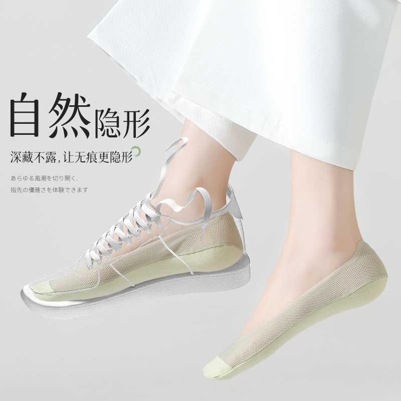 诸暨袜子女士夏季 冰丝船袜纯棉底浅口隐形防滑不掉跟网眼短袜 薄款