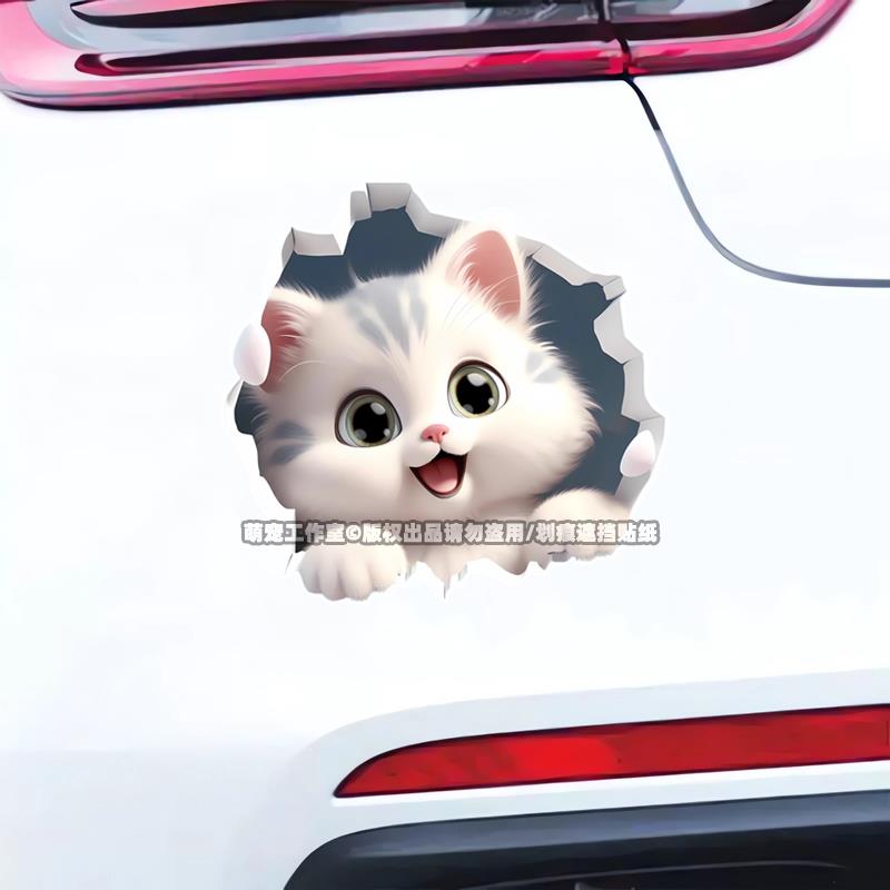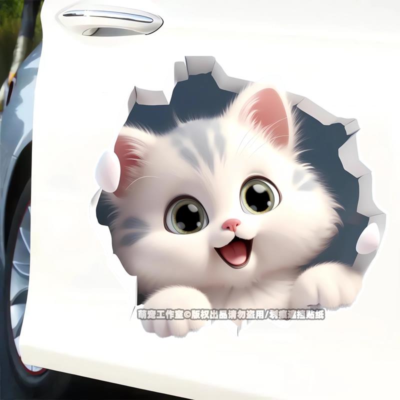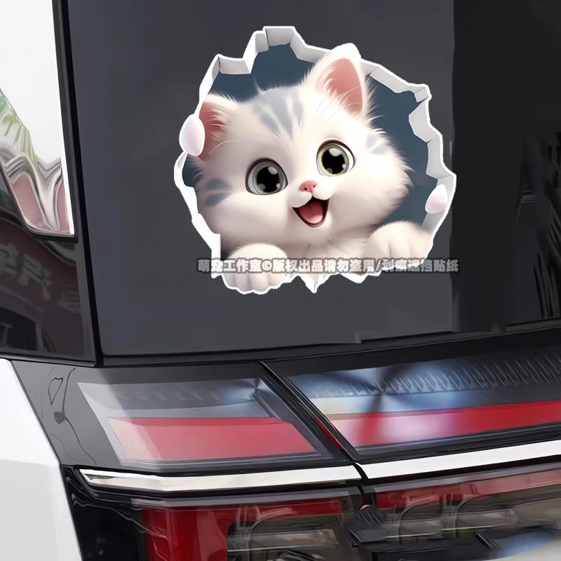 创意小猫咪装 饰车贴纸摩托电动汽车身划痕遮挡房间马桶门墙3d贴画