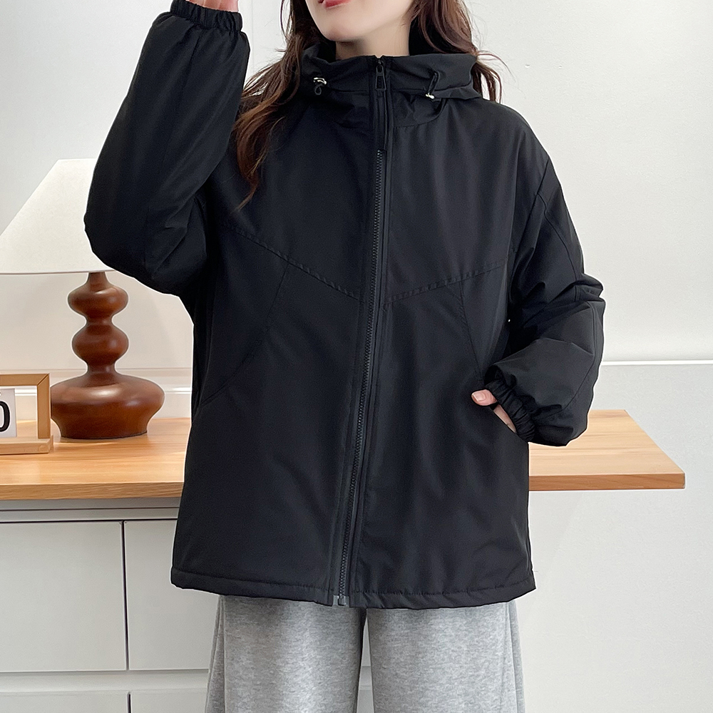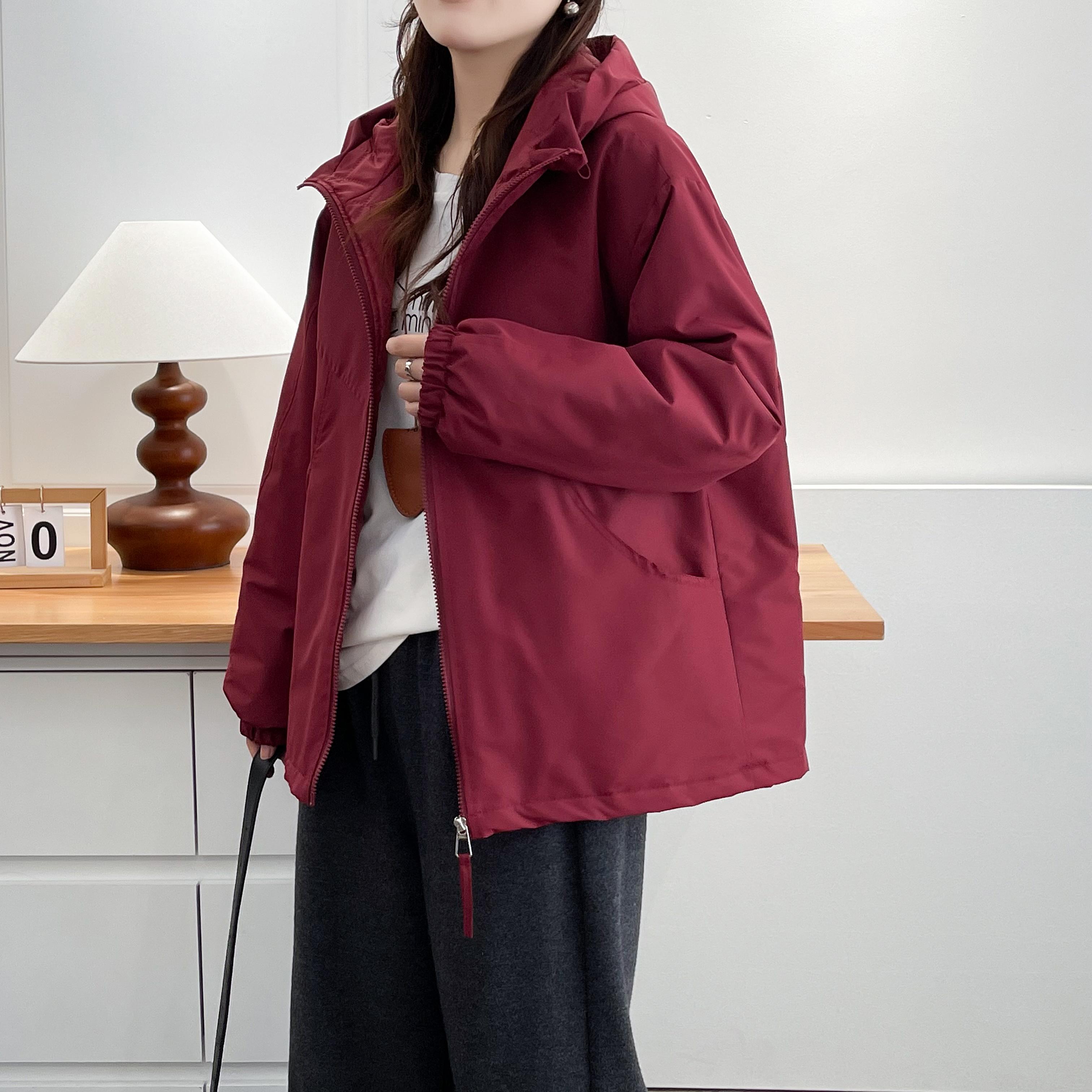 连帽棉服外套胖mm宽松洋气休闲加厚保暖夹棉棉衣上衣 冬季 大码 女装