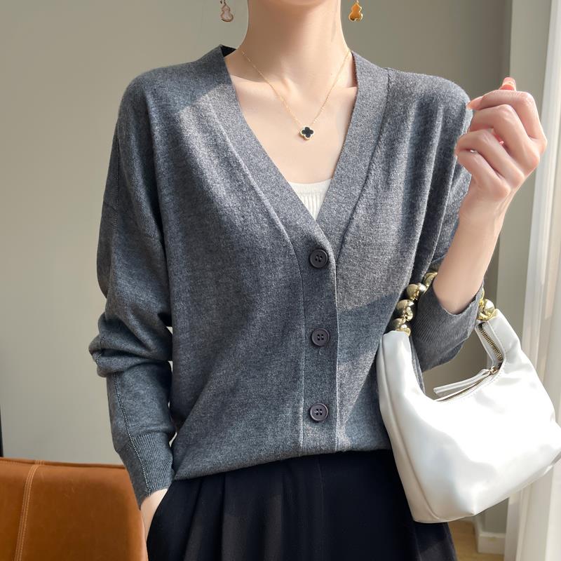 潮牌复古纯色针织衫 V37美式 秋季 毛衣男款 外套 慵懒风chic纽扣开衫
