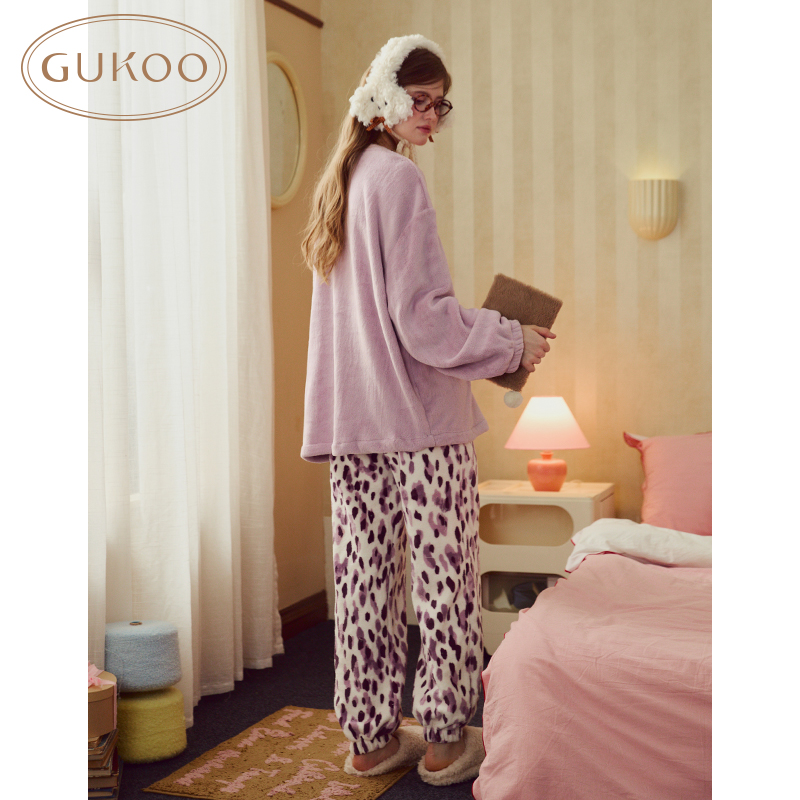 海岛绒可外穿家居服 简约薄款 睡衣女秋冬季 保暖珊瑚绒女士睡衣套装
