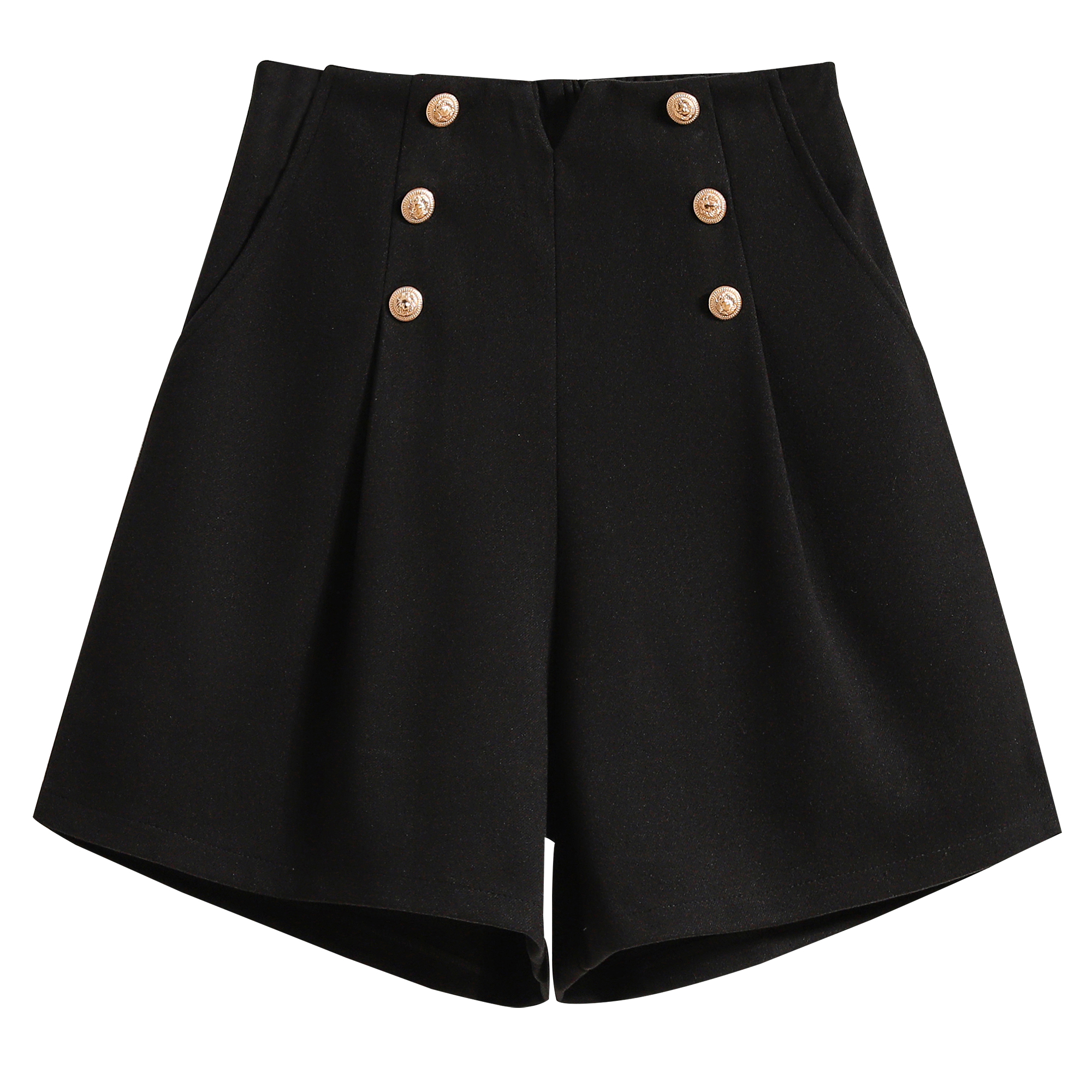 潮流时尚 高级排扣毛呢百搭靴裤 洋气减龄短裤 新款 2025秋季 胖MM韩版