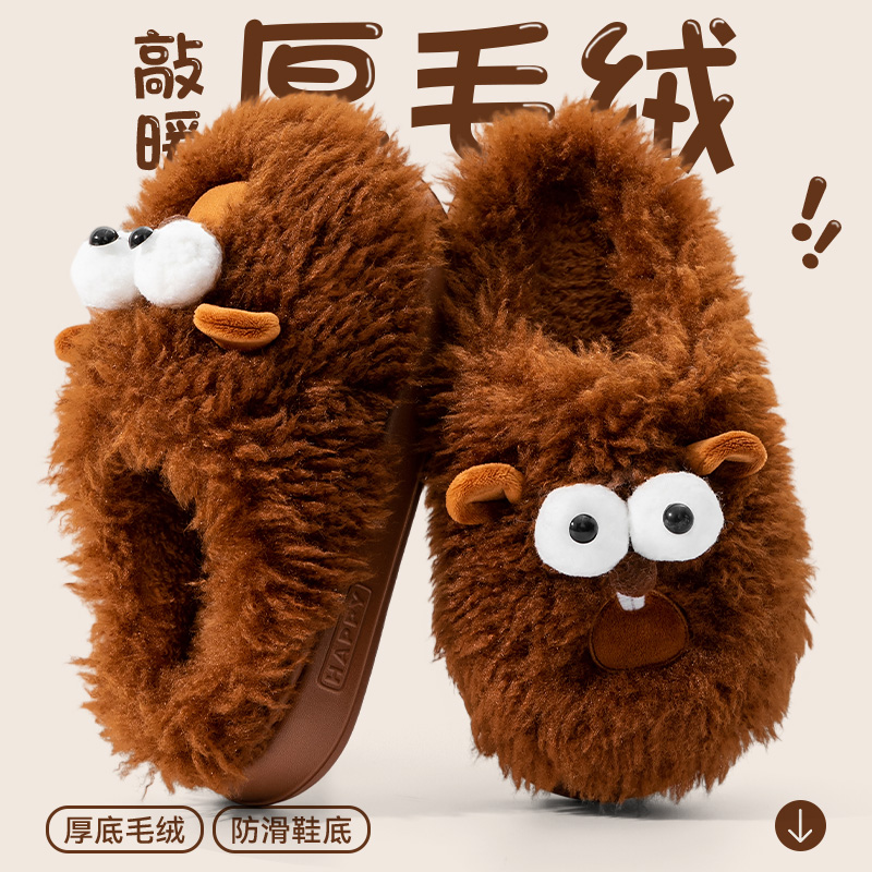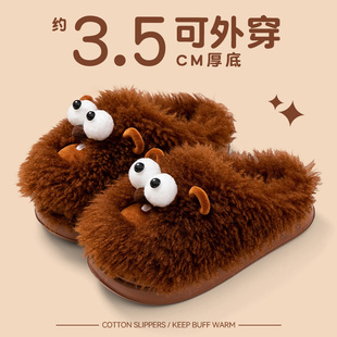 秋冬季 2025新款 室内家居保暖厚底防滑踩屎感棉拖 女款 毛绒绒棉拖鞋