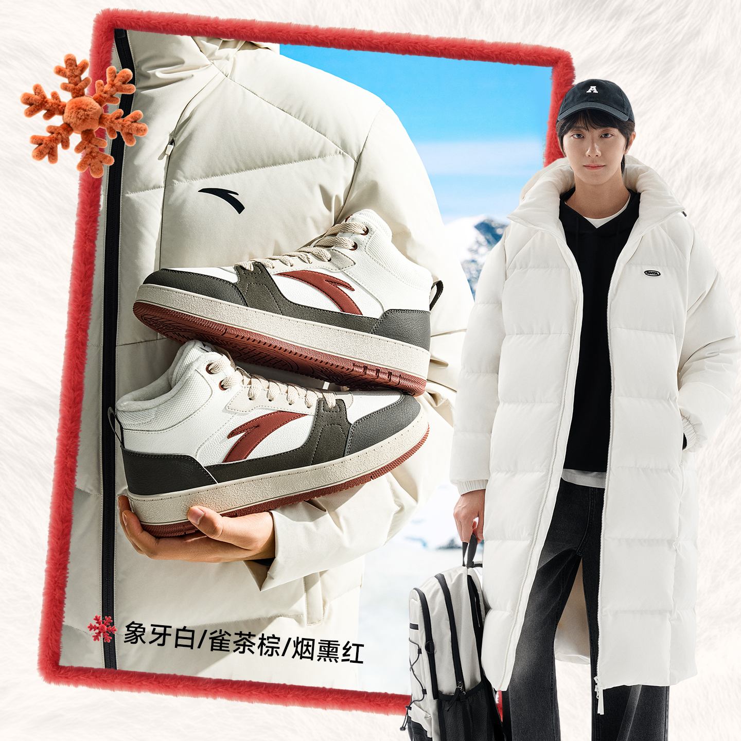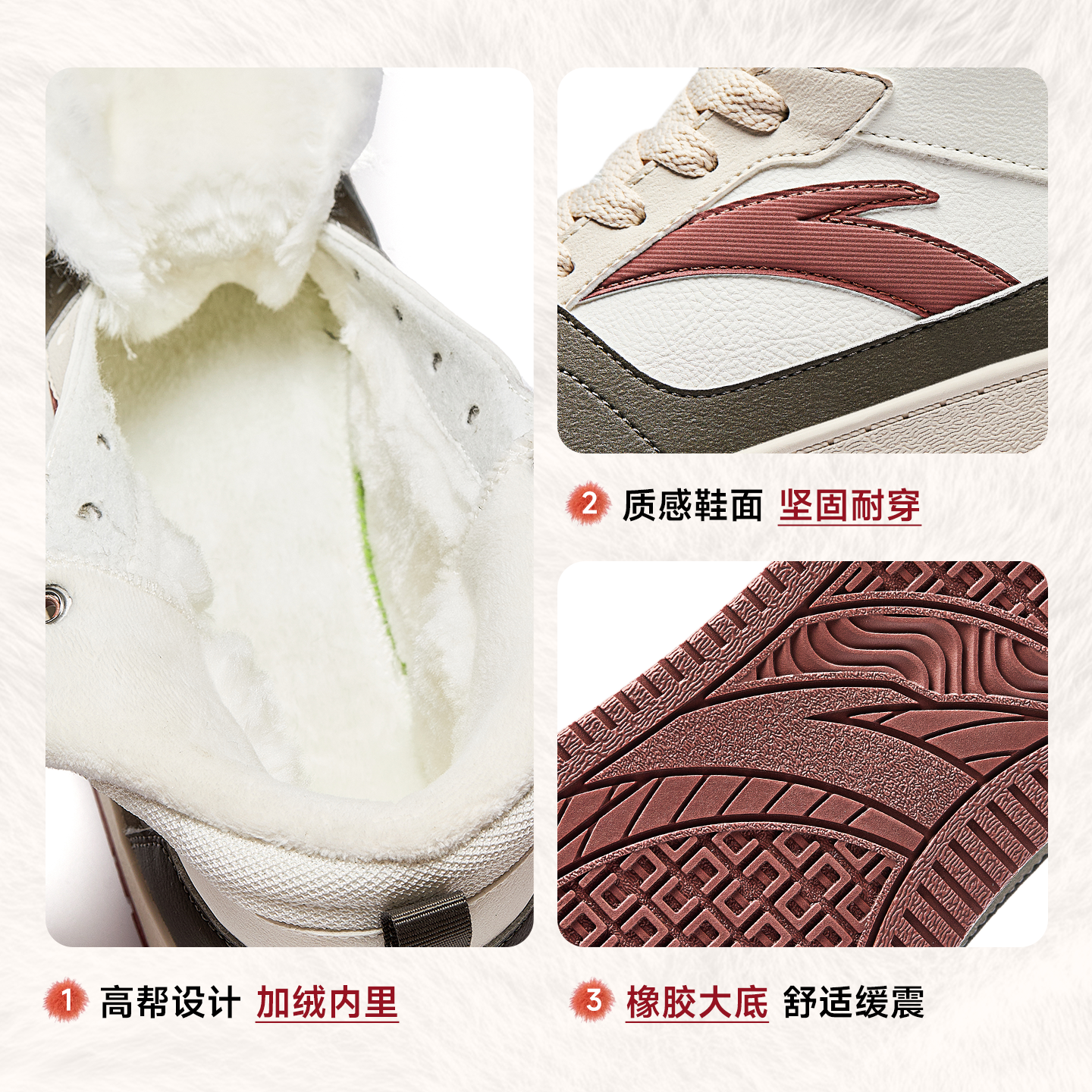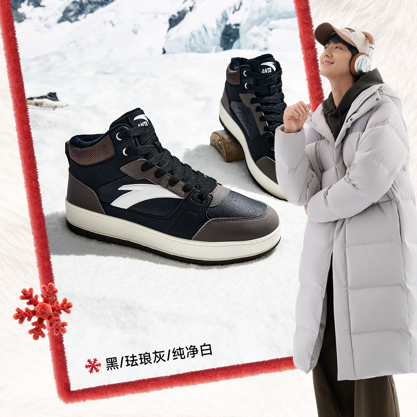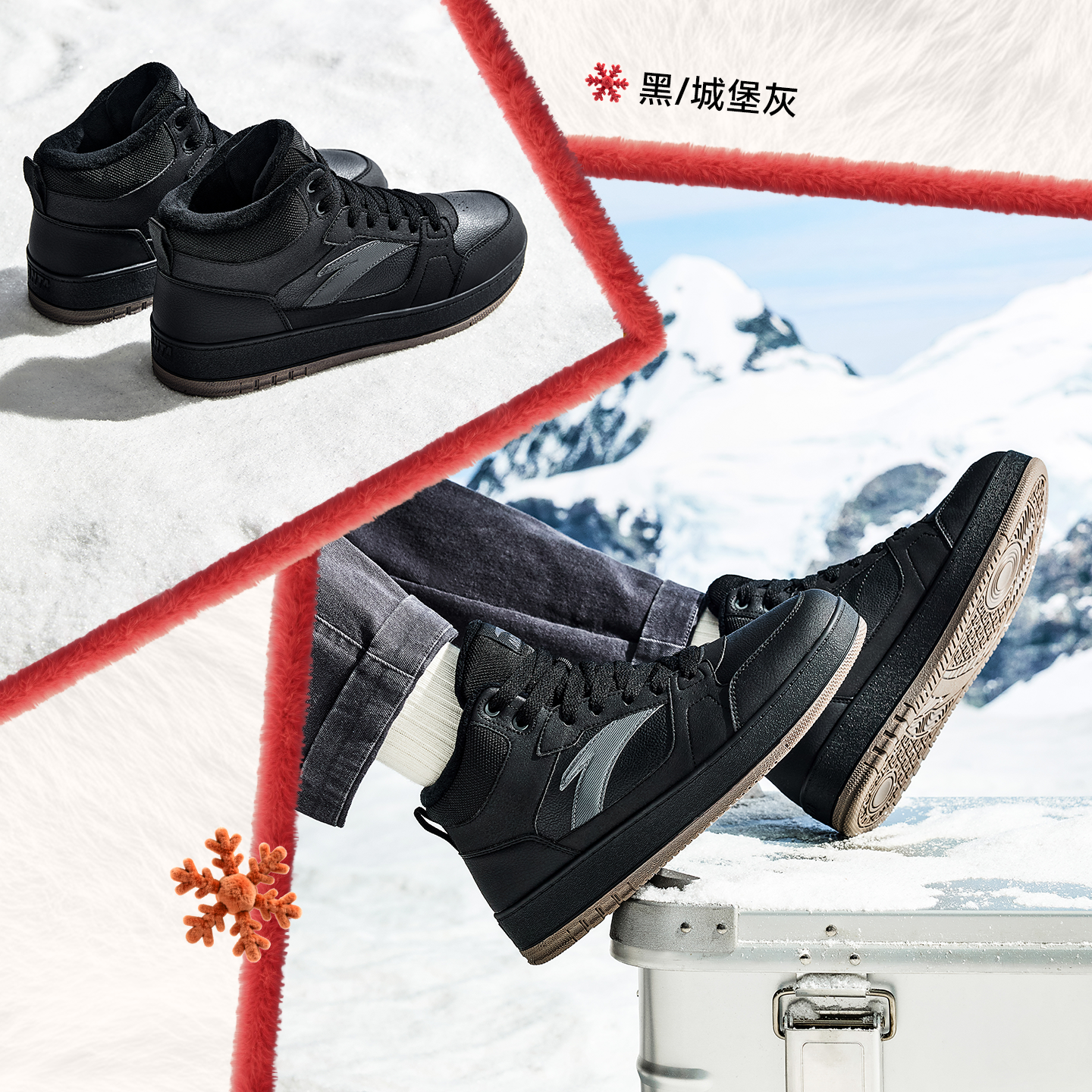 冬季 男鞋 加绒保暖防泼水运动鞋 官方正品 男 安踏元 板鞋 年2高帮棉鞋
