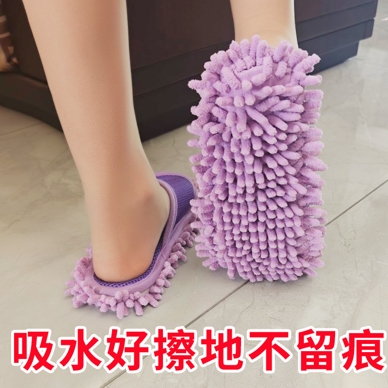 通用静音拖地鞋 雪尼尔吸水防滑懒人擦地拖鞋 居家清洁可水洗四季