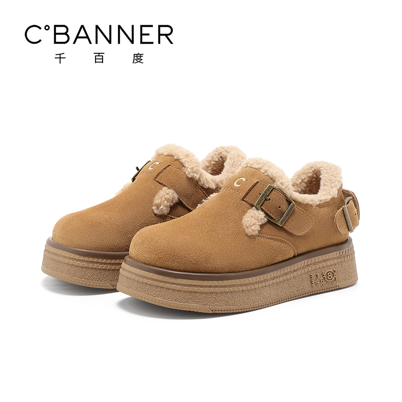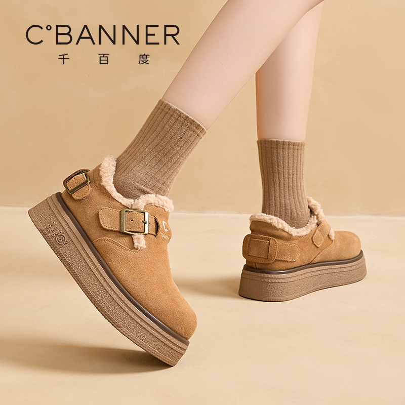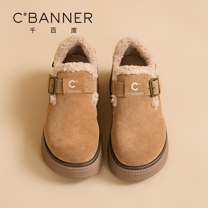 百搭加厚休闲单鞋 千百度加绒勃肯鞋 厚底保暖棉鞋 2025新款 女 女冬季