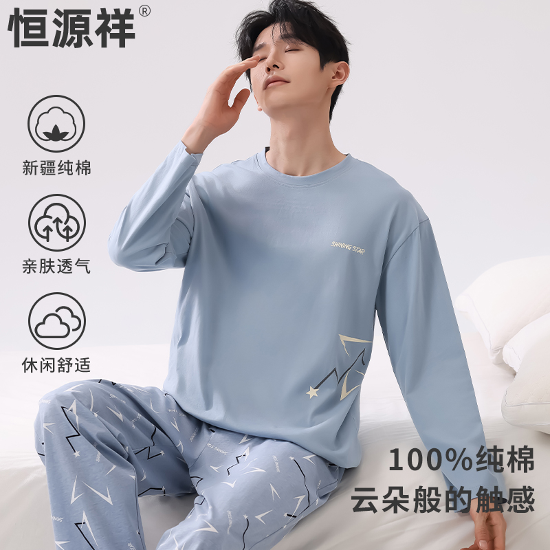 睡衣男士 大码 纯棉春秋男生套装 春季 休闲家居服夏 青年男款 芬腾长袖