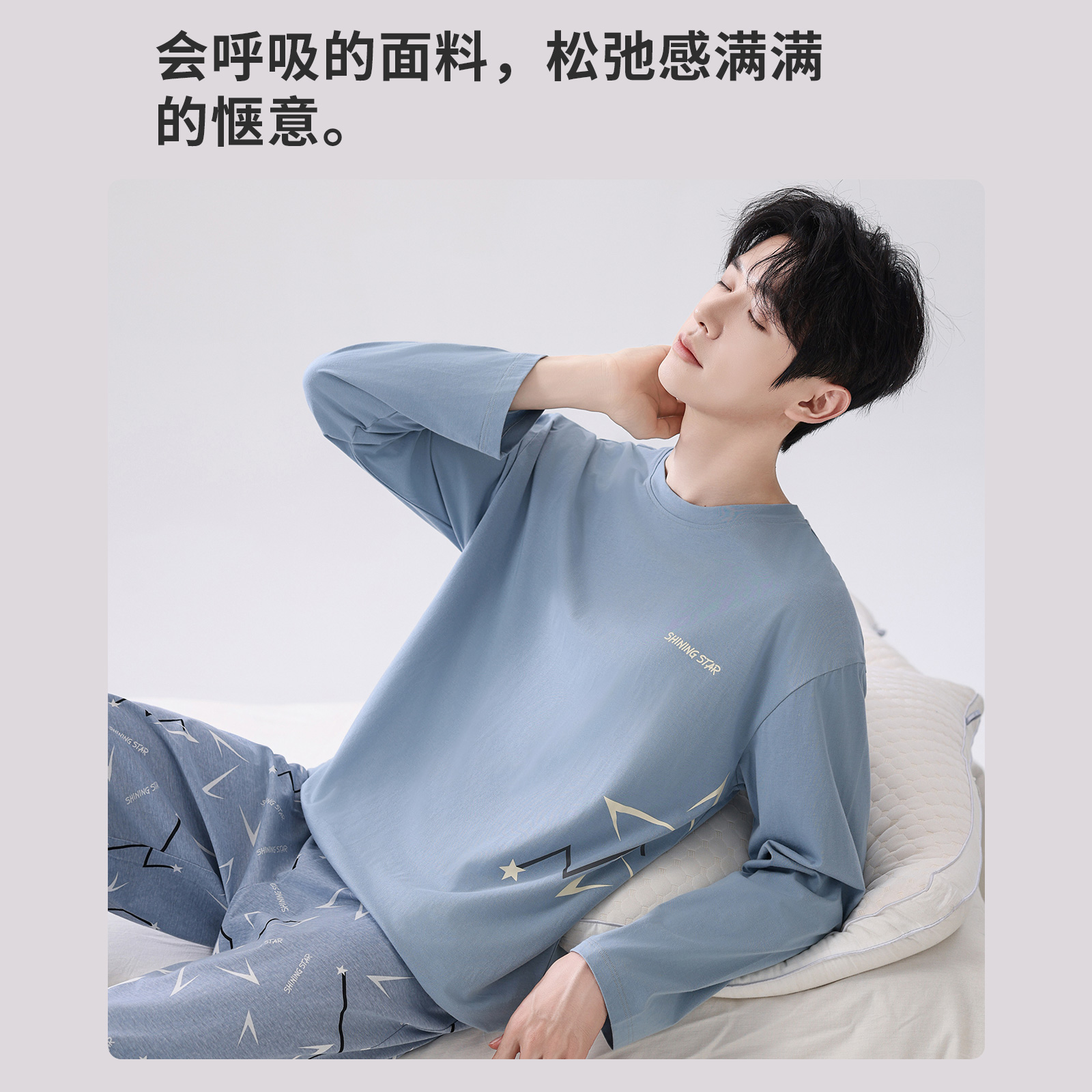 睡衣春秋季 新款 简约宽松大码 安之伴 套装 男士 长袖 家居服 巨柔软