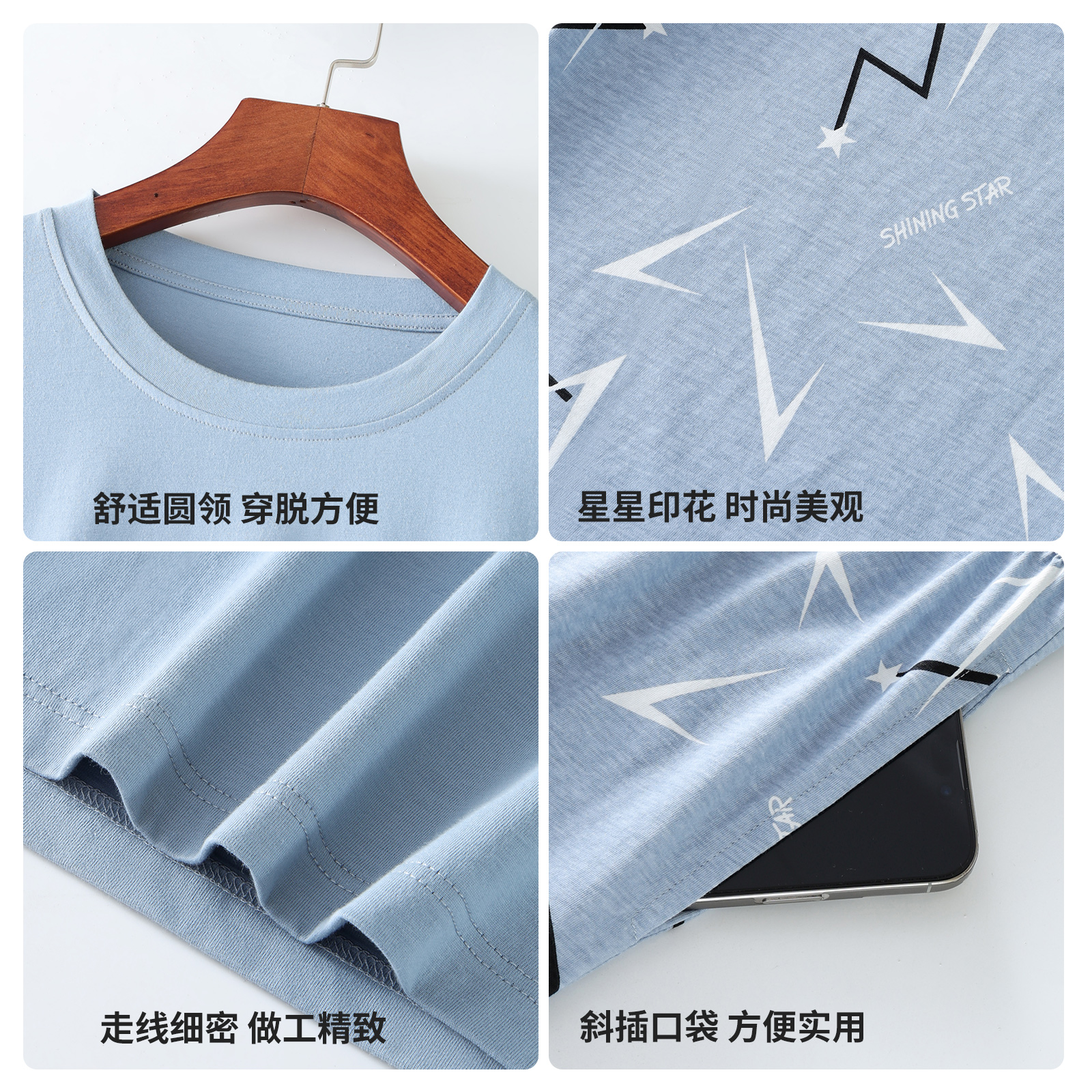 短袖 夏季 2025新款 超火薄款 猫人冰丝男士 可外穿家居服套装 睡衣男款