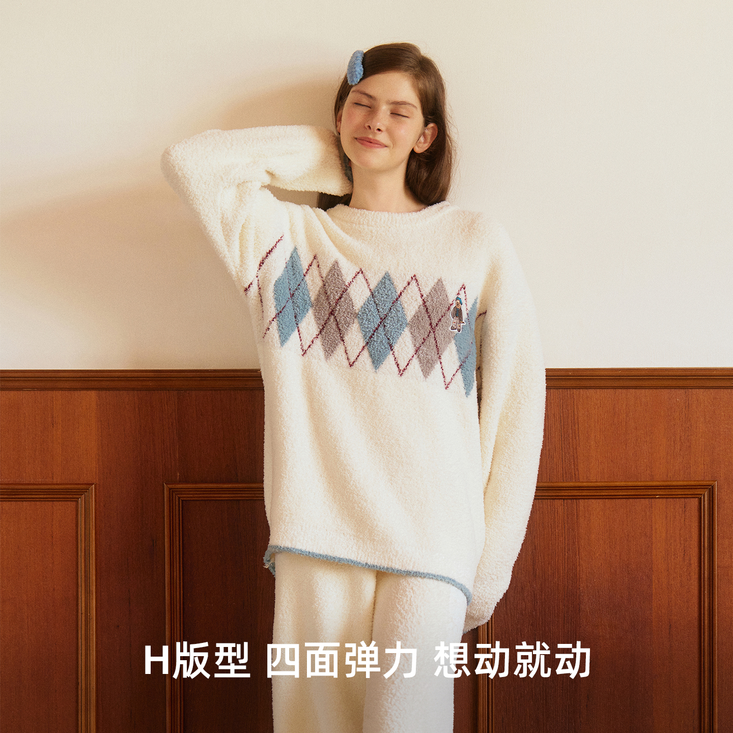 秋冬加绒加厚家居服套装 TeenieWeenie小熊半边绒睡衣女款 2025新款