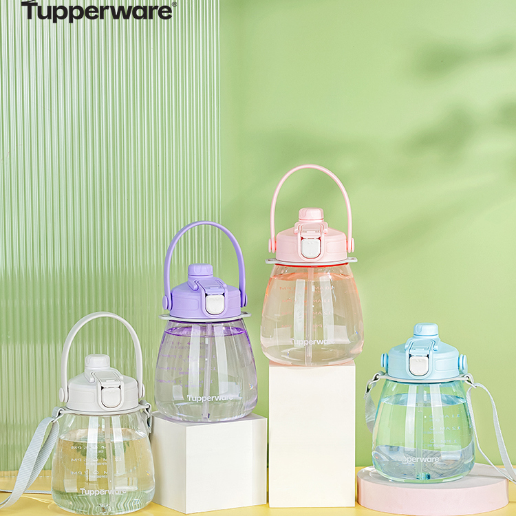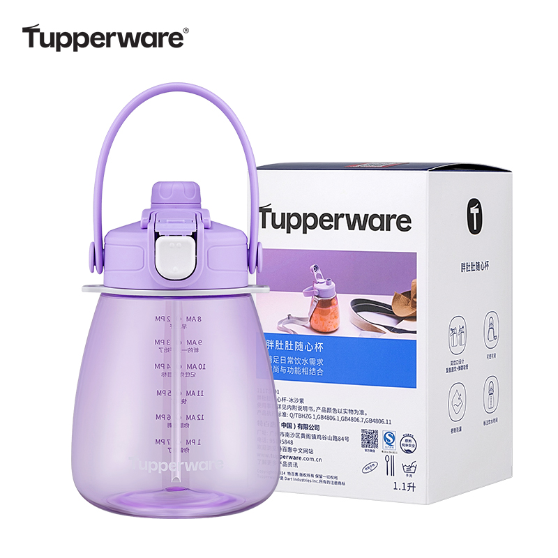 特百惠胖肚肚水杯1.1L大容量运动水壶大肚吸管高颜值 政府补贴