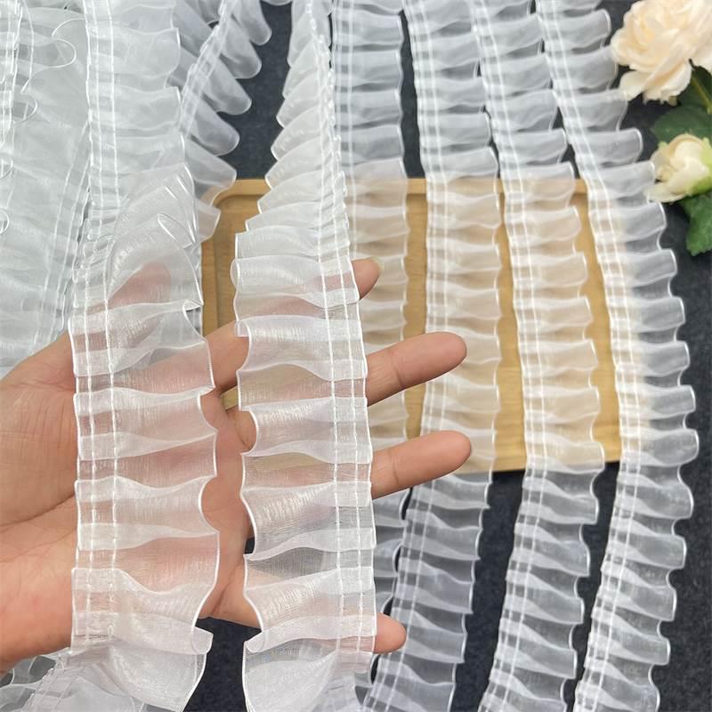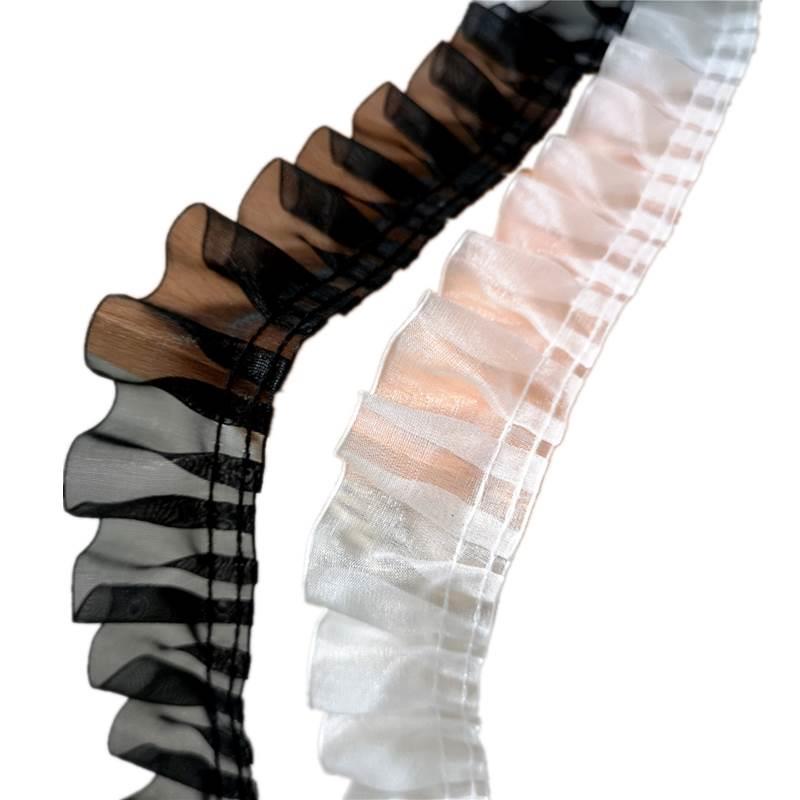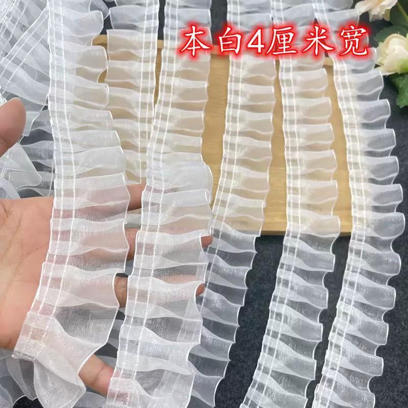 雪纺纱花边辅料裙子边袖 饰 口边领口边褶皱蕾丝雪纺布条diy手工装