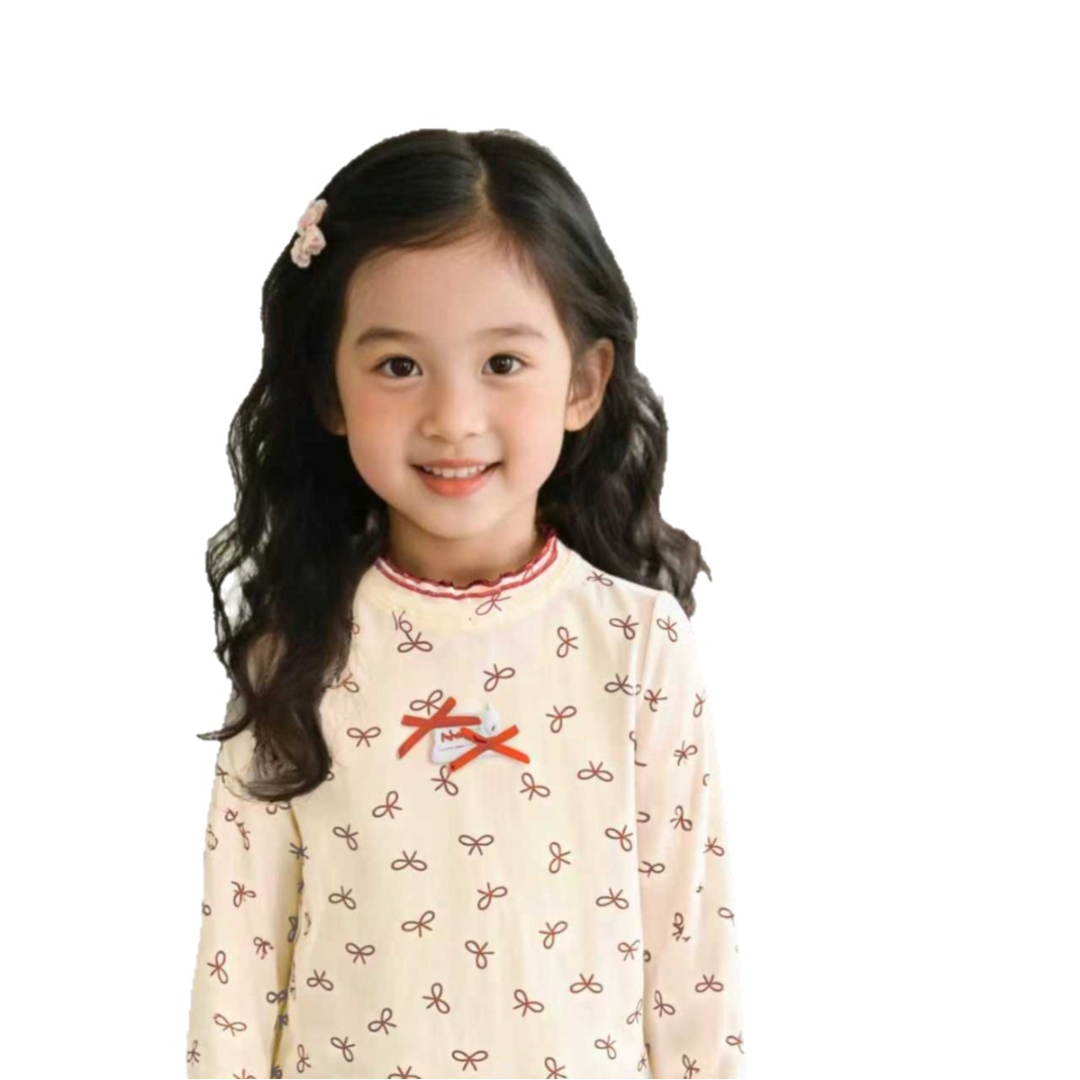韩版 2025新款 打底衫 女童春秋长袖 蝴蝶结T恤儿童花边上衣B181 秋季