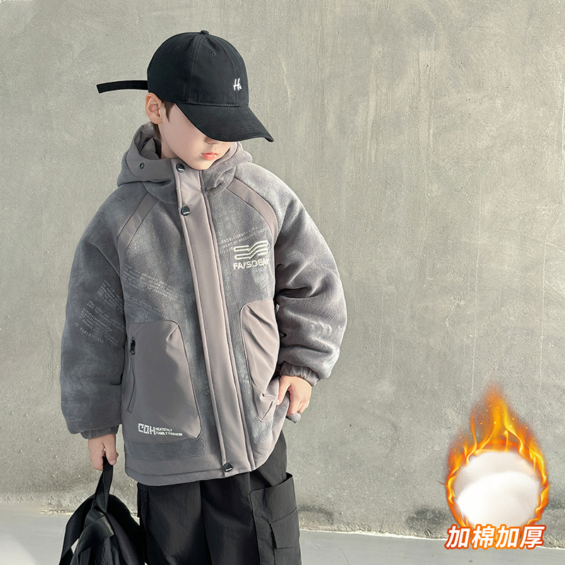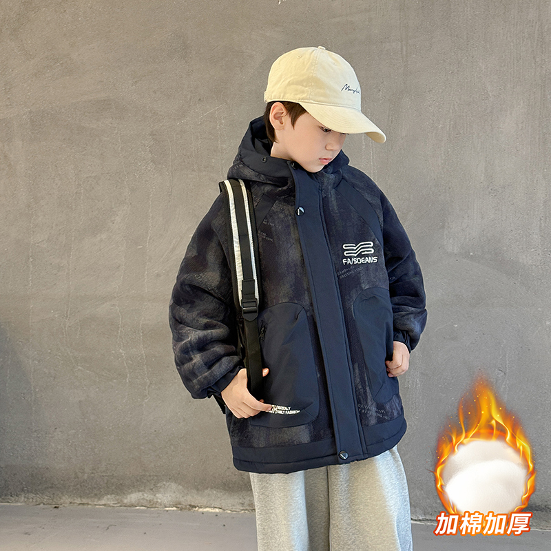 冬装 儿童装 夹棉冬季 2025新款 中大童男孩加厚衣服潮 男童外套秋冬款