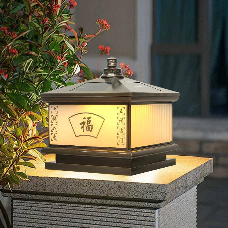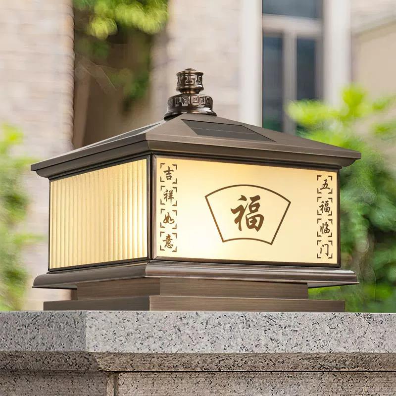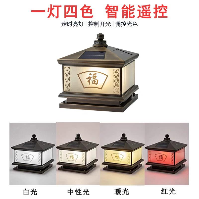 铝合金柱头灯户外防水太阳能庭院灯中式 别墅大门柱子灯围墙门柱灯