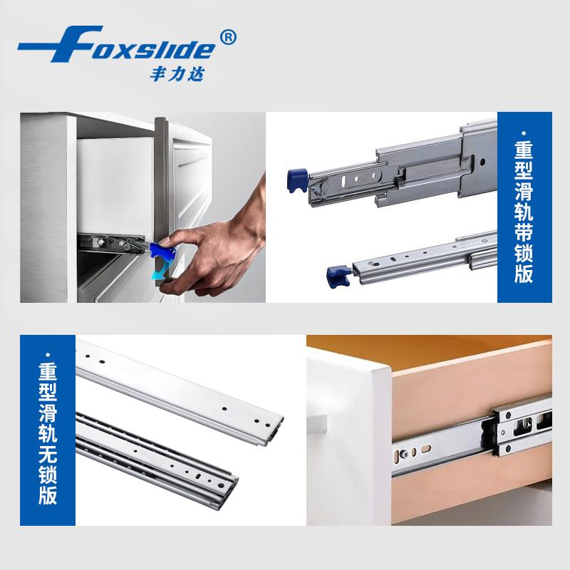 丰力达76宽工业重型滑轨导轨抽屉轨道三节轨机柜货柜轨道房车专用