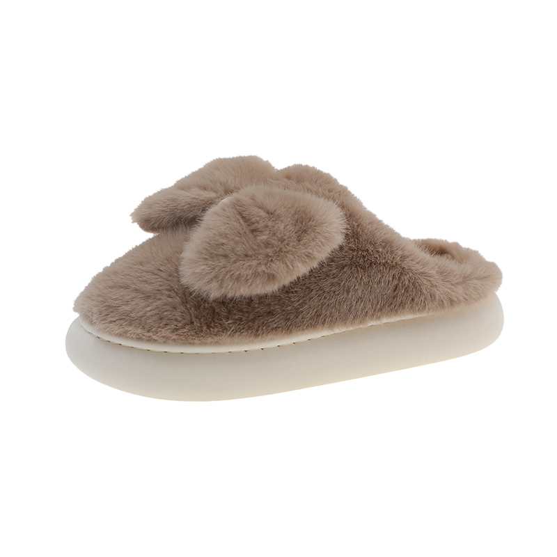 月子室内家居家防滑厚底踩屎感毛毛绒保暖情侣男 秋冬季 棉拖鞋 女款