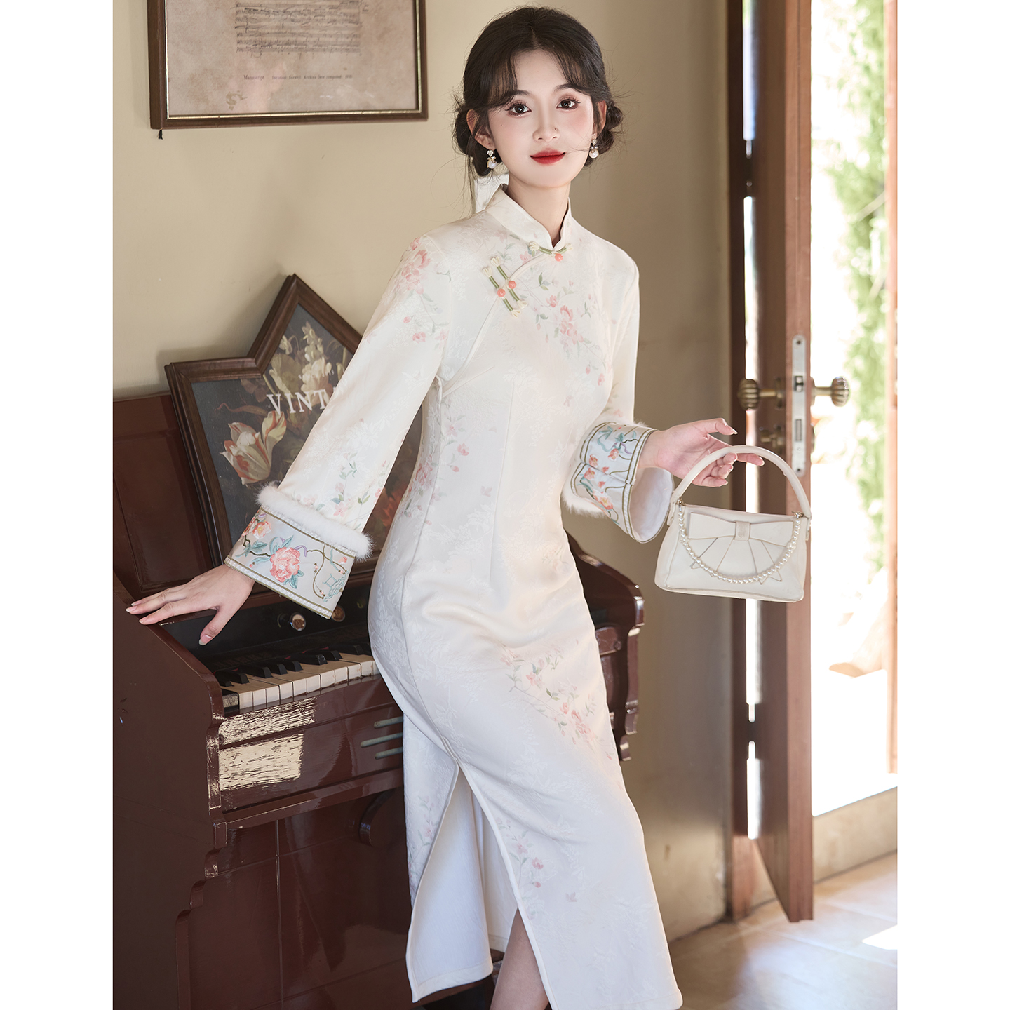 成熟优雅高级感通勤气质天鹅绒旗袍 新中式 IEF 爱依服2025秋冬新款