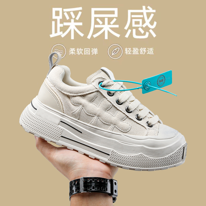 男款 子百搭潮鞋 女2025新款 情侣厚底增高休闲鞋 秋季 棕色真皮梅花鞋