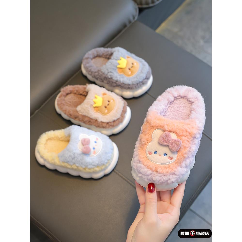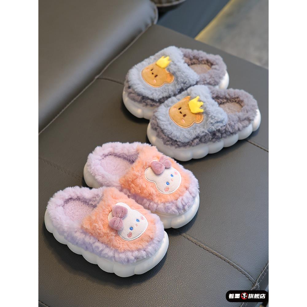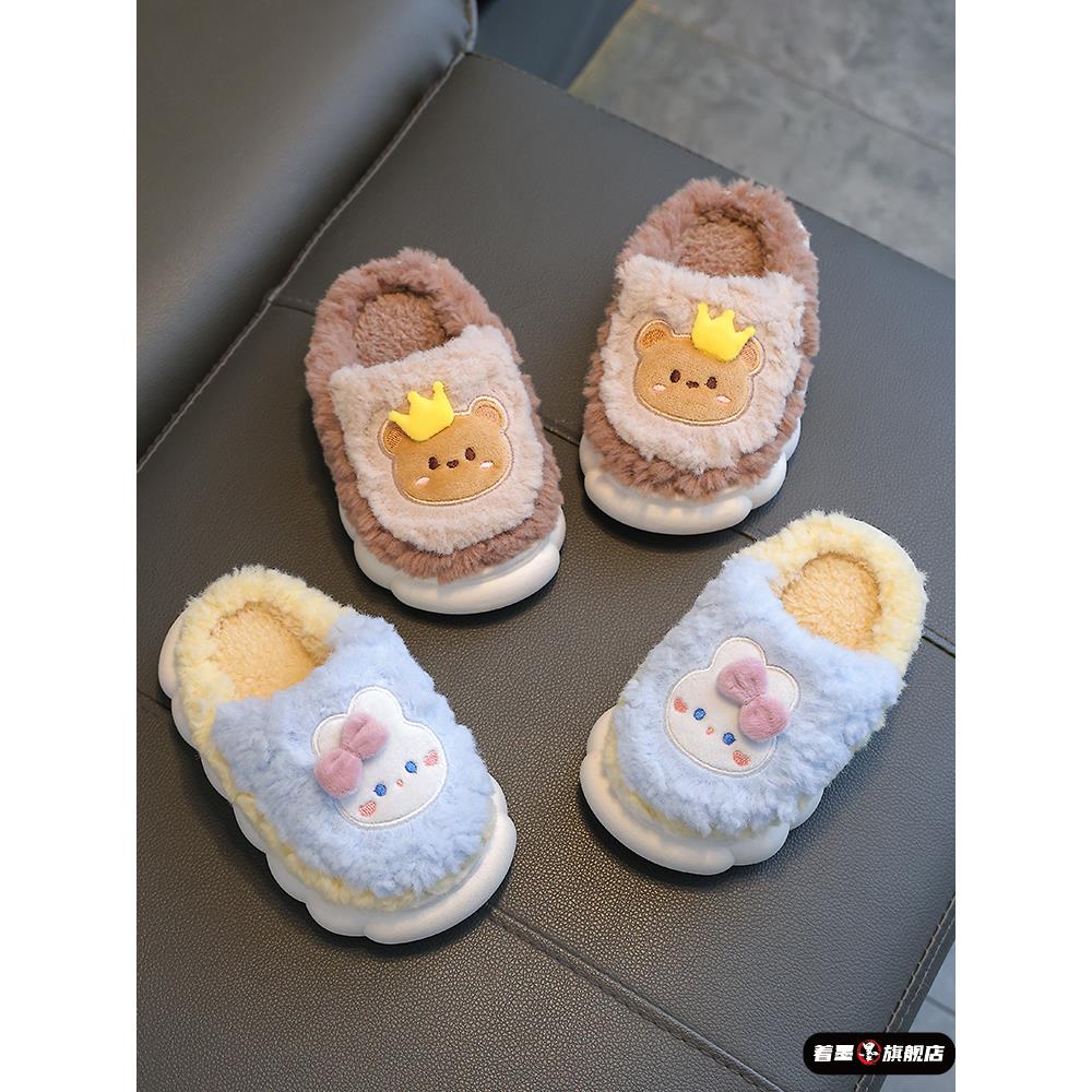 男女童防滑亲子宝宝小孩卡通保暖包跟棉鞋 儿童室内家居棉拖鞋 冬季