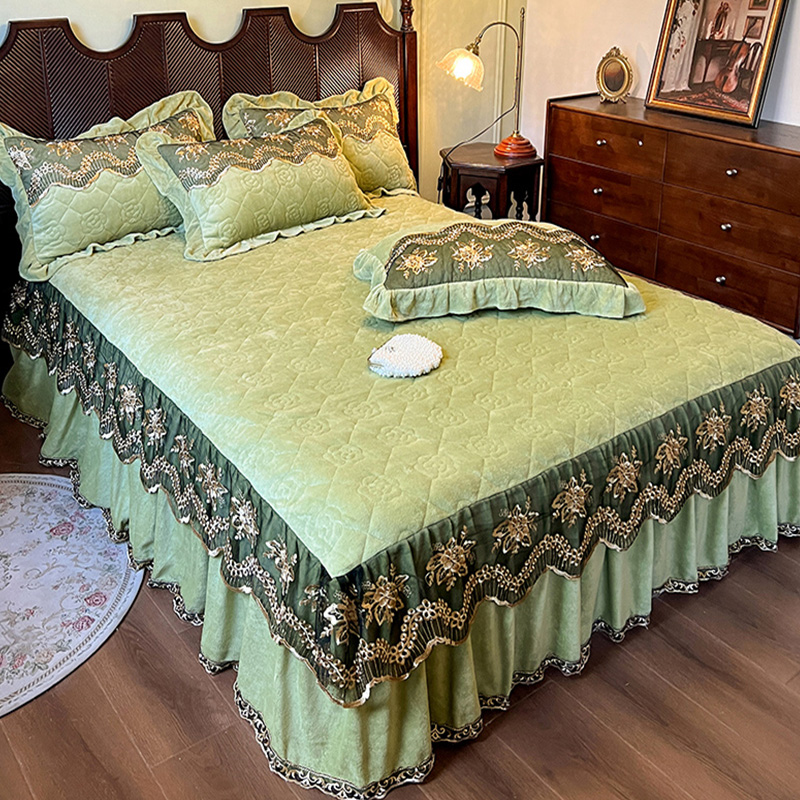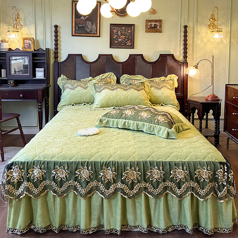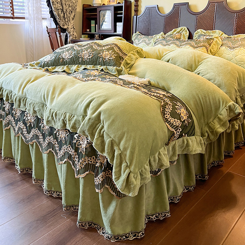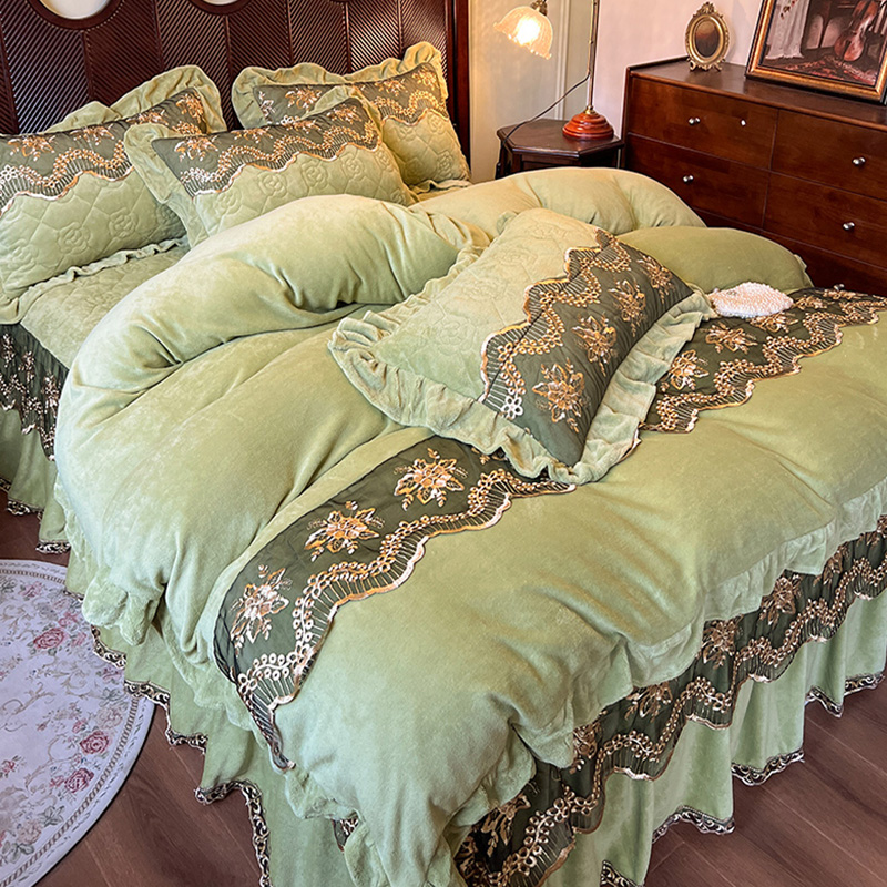 高克重牛奶绒四件套夹棉床裙款 双面绒花边被套轻奢风高级感裙边款