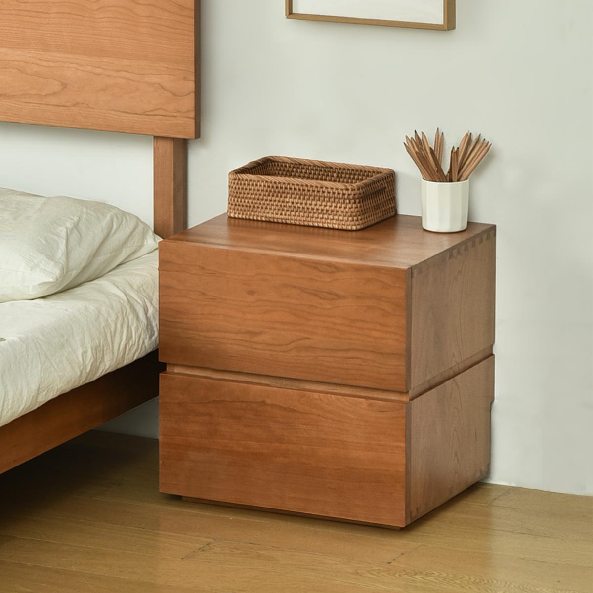 高级感实木床头柜黑色侘寂风床边柜简约现代储物卧室简易收纳柜子