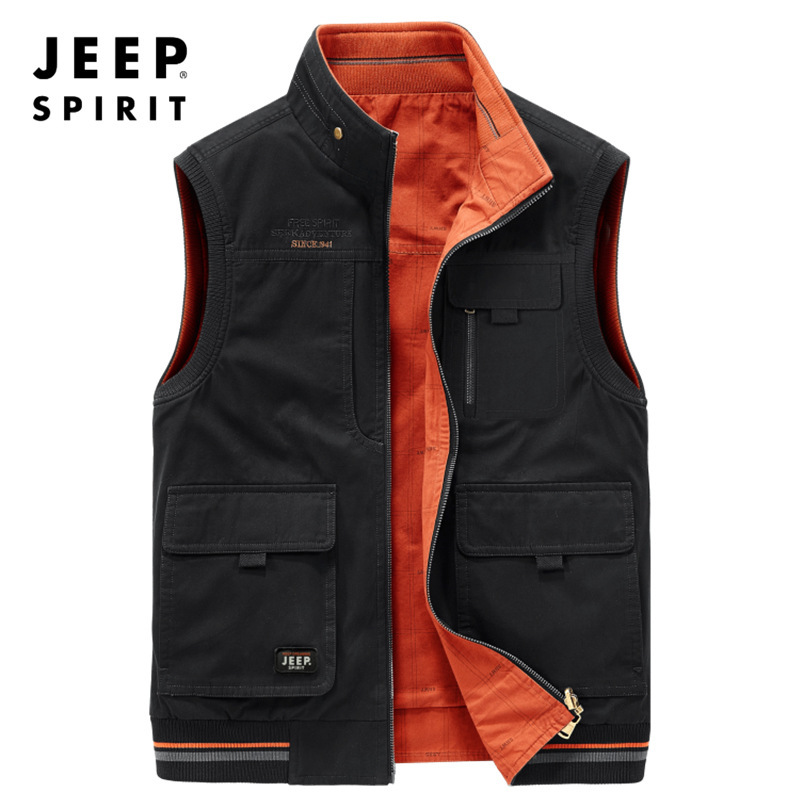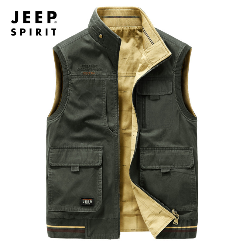 JEEP吉普春秋双面穿马甲男两面穿马夹多口袋大码 立领8XL背心0700