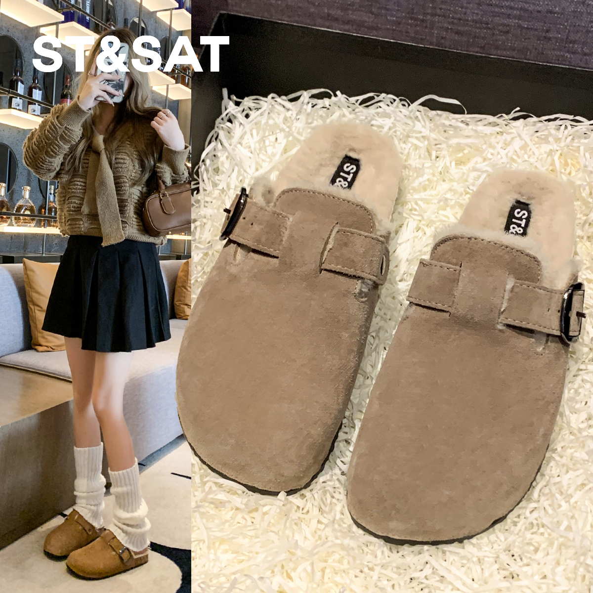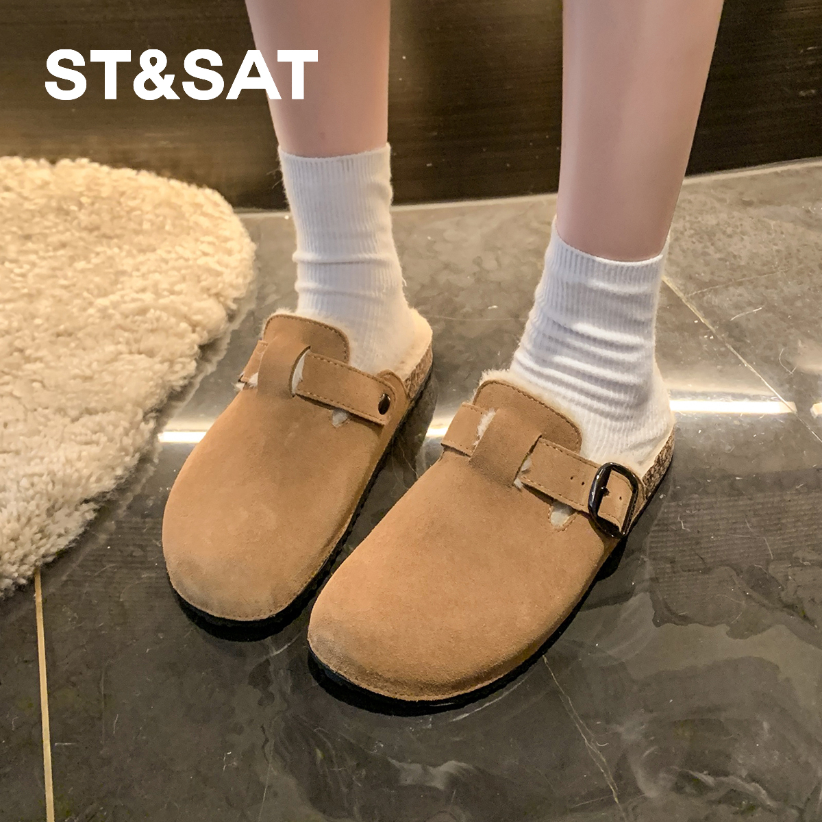 外穿半拖鞋 三喜软木日系博肯秋季 厚底增高包头拖女2025夏季 勃肯鞋