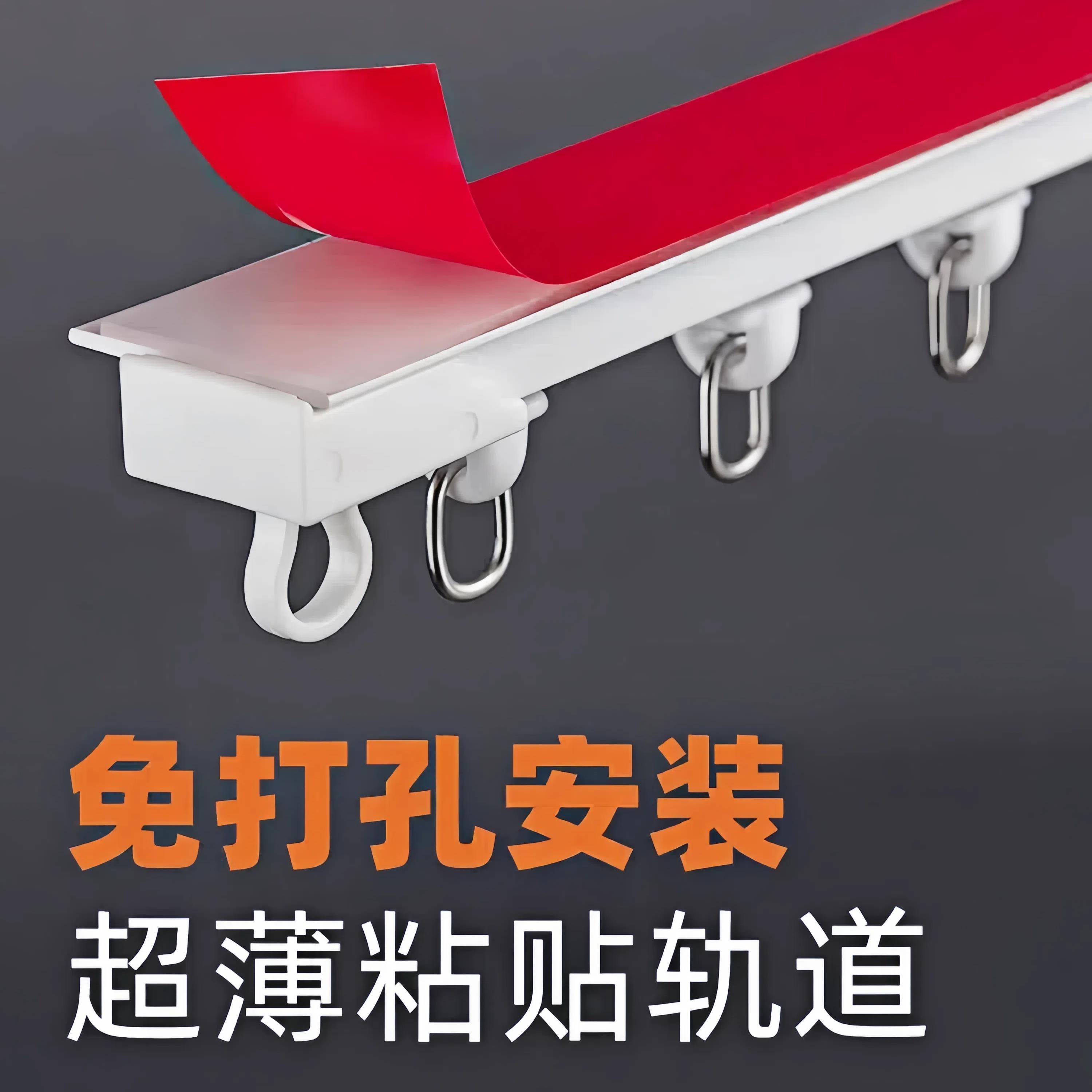 滑道 侧装 静音加宽窗帘轨道免打孔安装 滑轨窗帘杆粘轨导轨单轨顶装