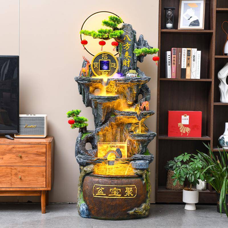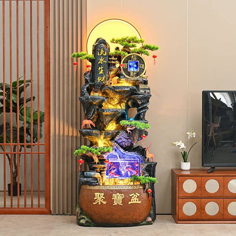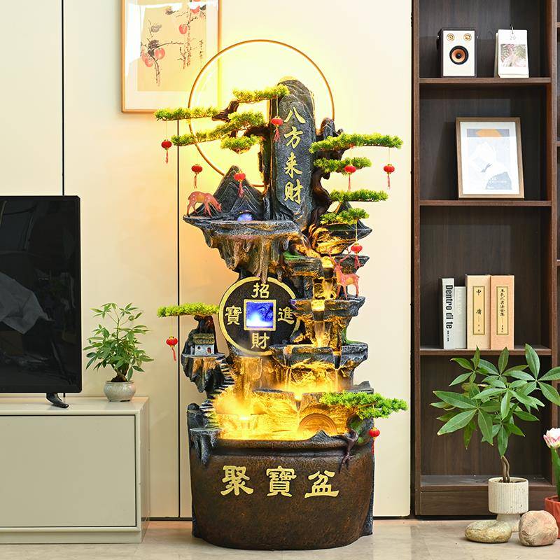 假山流水喷泉客厅循环水生财景观招财风水轮办公室落地装 饰大摆件