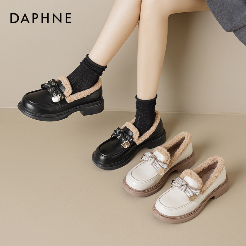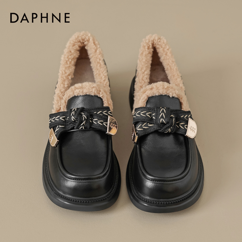 通勤毛毛棉鞋 达芙妮加绒乐福鞋 女2025秋冬保暖雪地靴一脚蹬小皮鞋