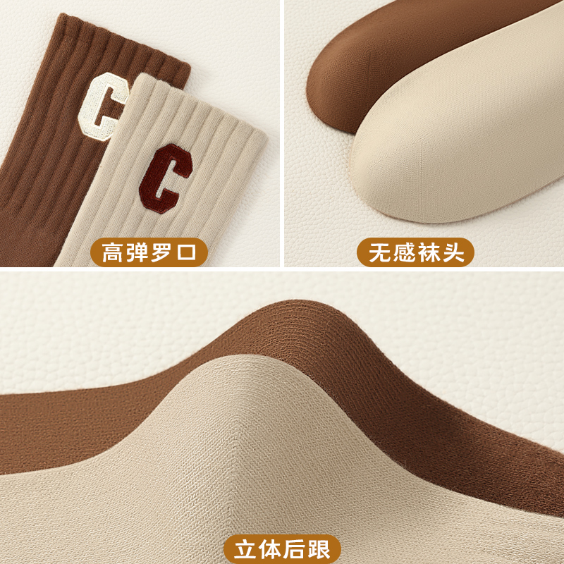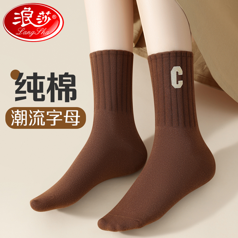 浪莎袜子女秋冬季 字母长筒袜 100%纯棉中筒运动袜全棉防臭配鲨鱼裤