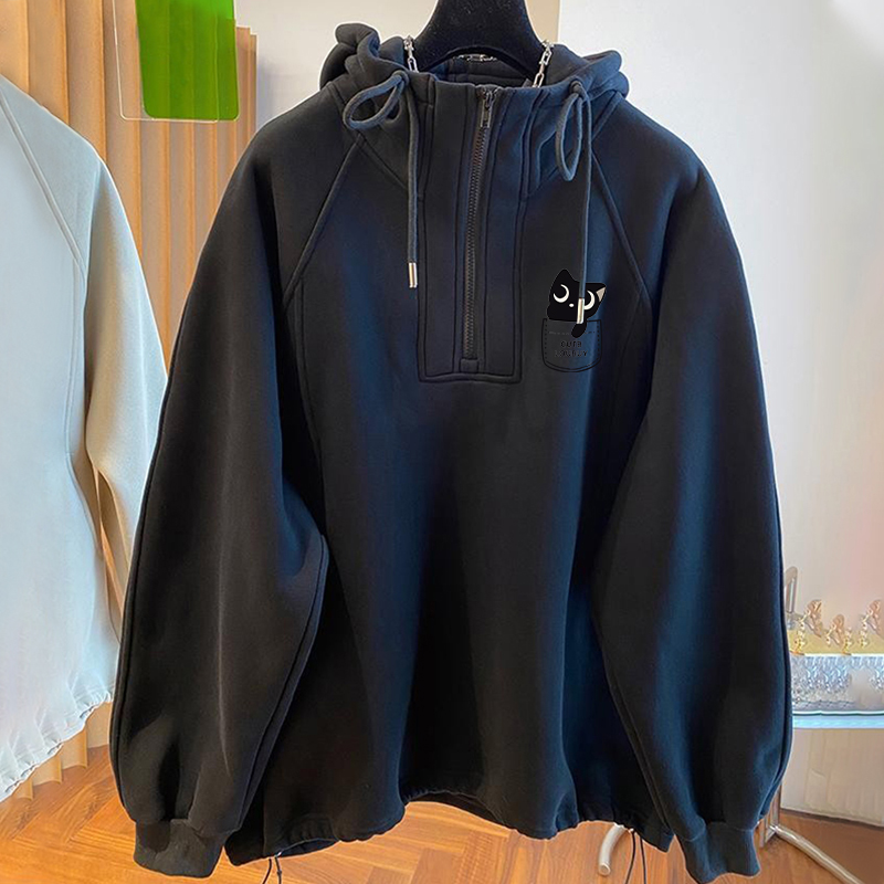 半开领套头衫 Navigare小帆船黑色加绒卫衣男秋冬新品 张新成同款