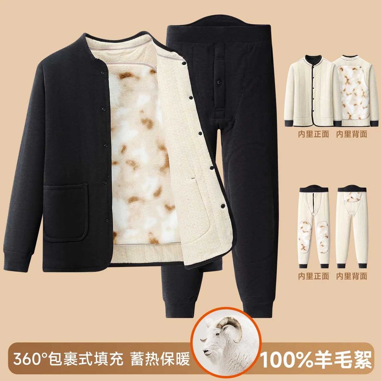 家居服男中老年羊毛加绒加厚套装 冬季 保暖睡衣 护背护膝 顶瓜瓜
