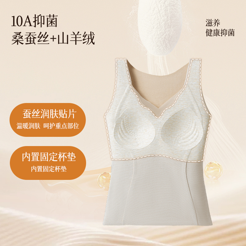 猫人保暖背心女士2025新款 无痕德绒加厚羊绒蚕丝吊带打底内衣秋冬