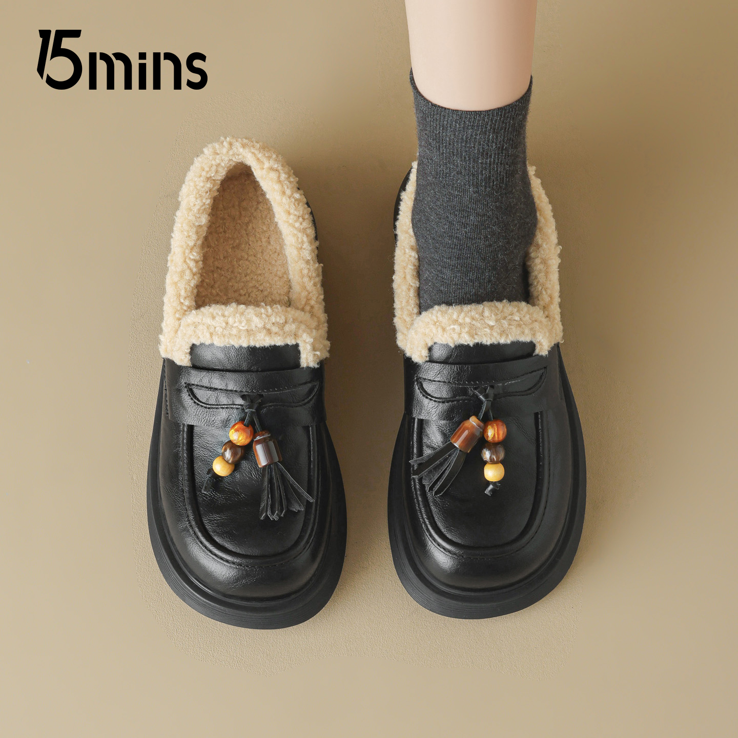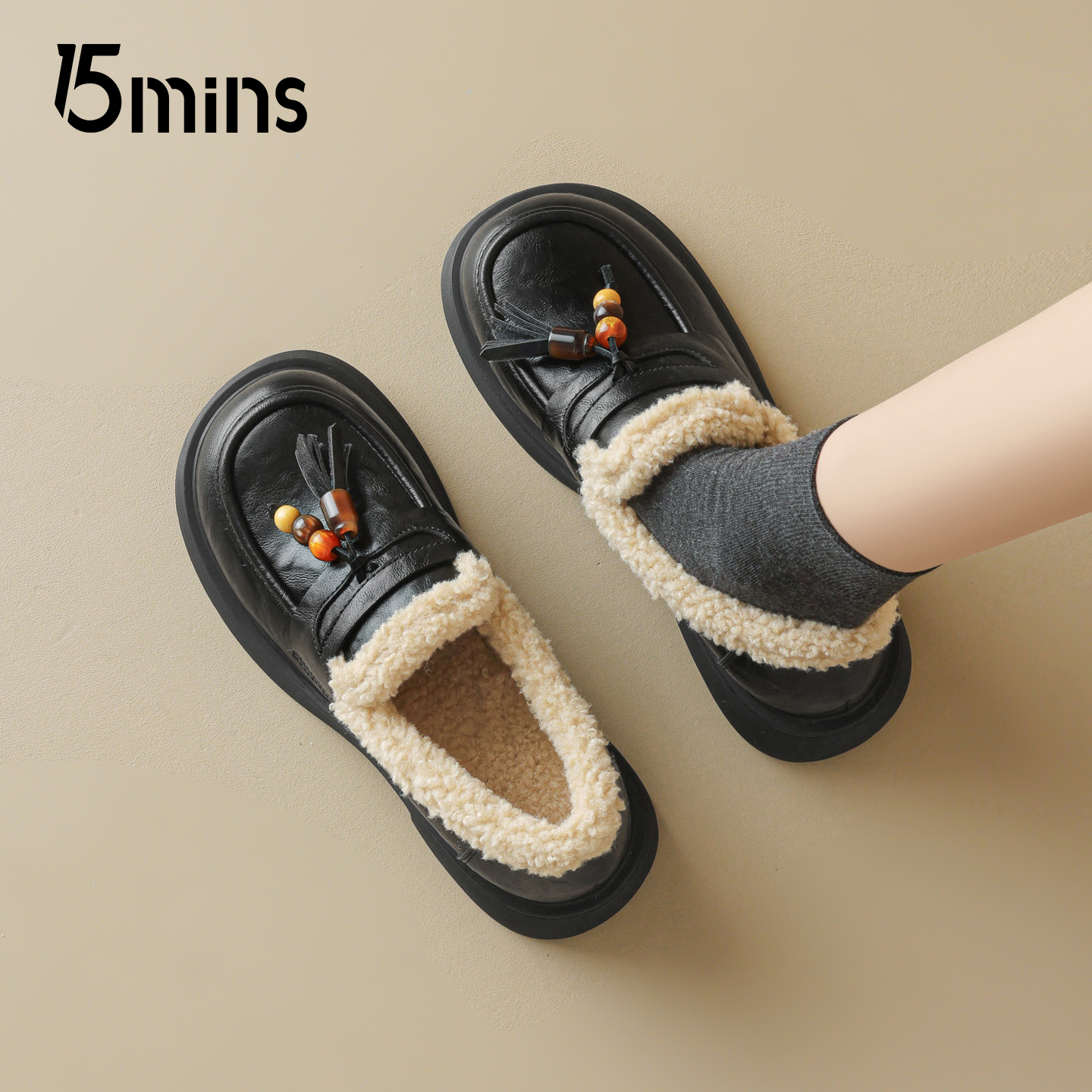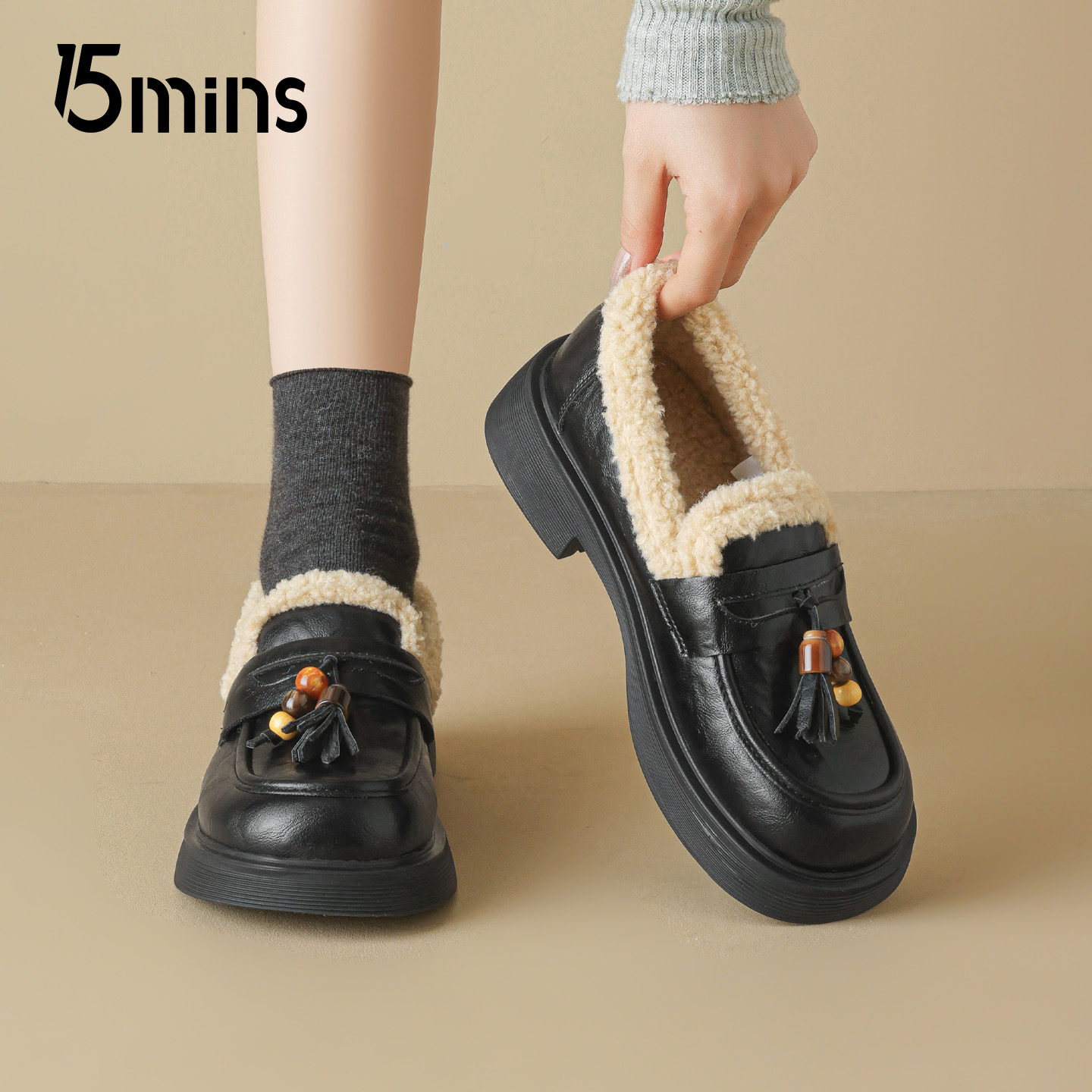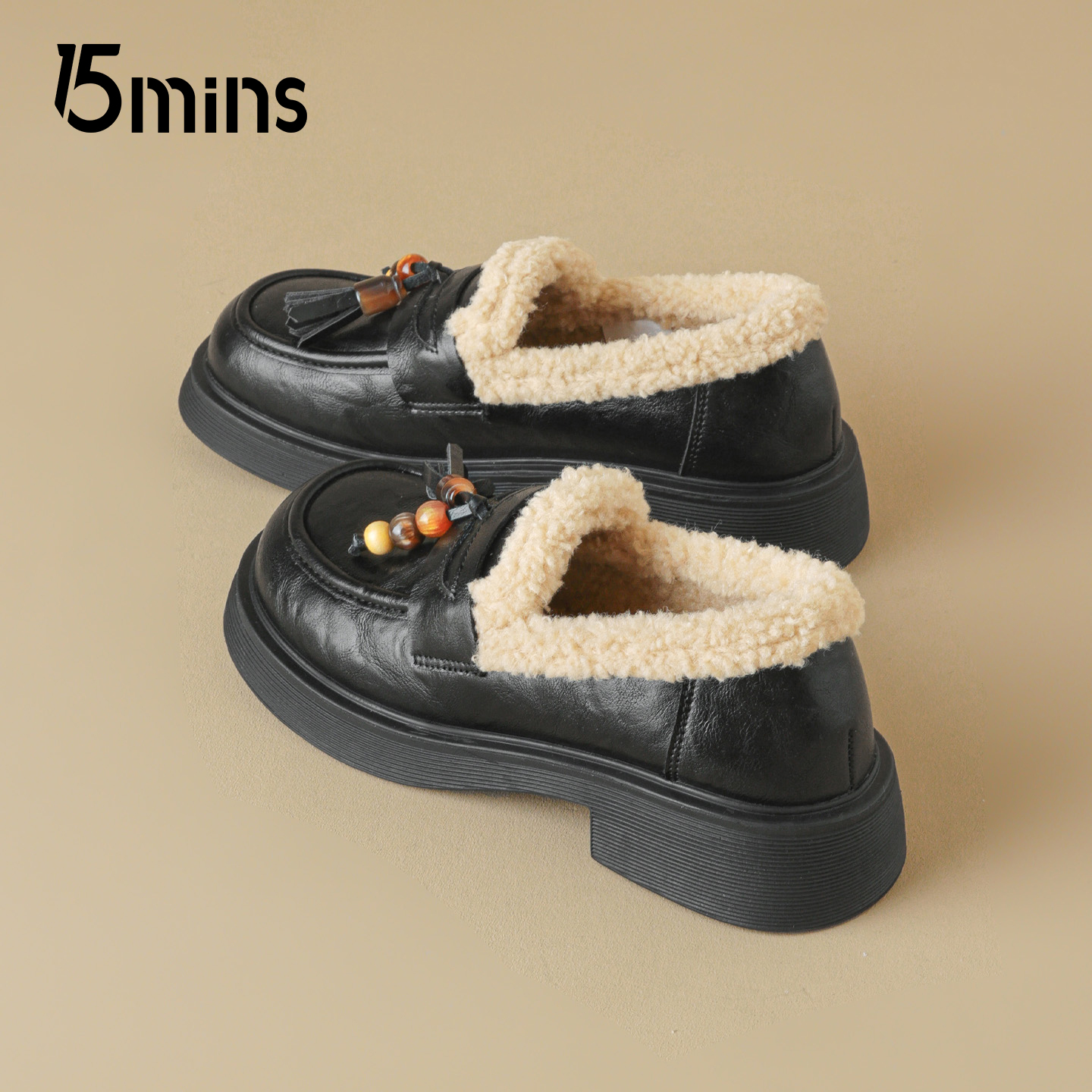 女款 英伦风单鞋 2025新款 厚底保暖毛毛小皮鞋 秋季 15mins加绒乐福鞋
