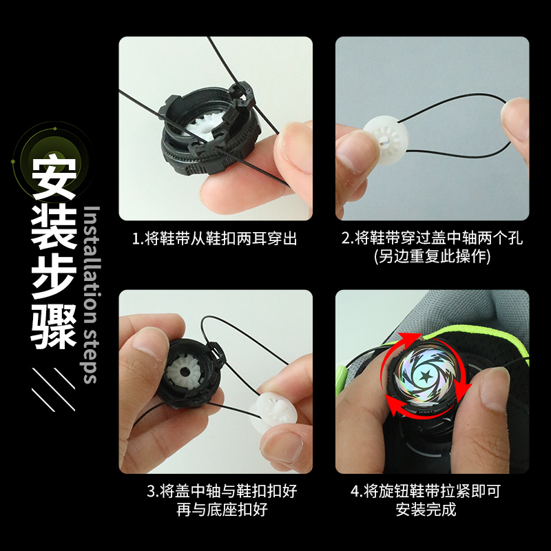 钢丝绳黑白色鞋 配件儿童运动鞋 带绳 带旋转纽扣鞋 适用361°旋钮鞋