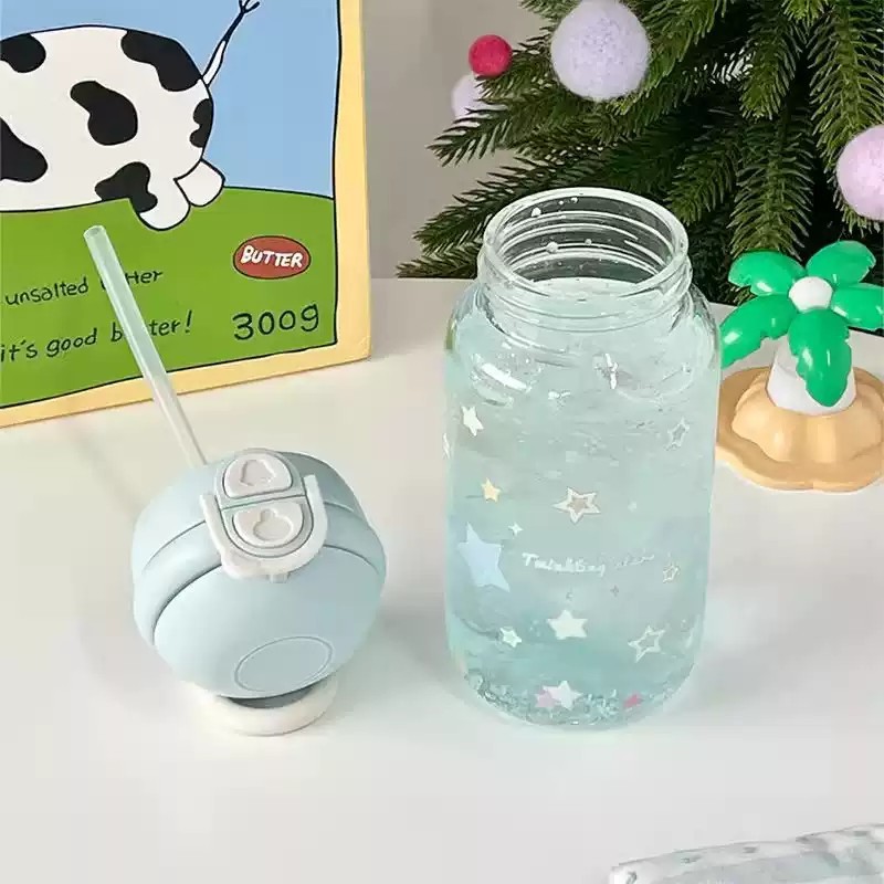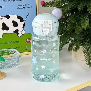 新款 星星ins塑料水杯女生高颜值学生夏天便携大容量双饮吸管杯子