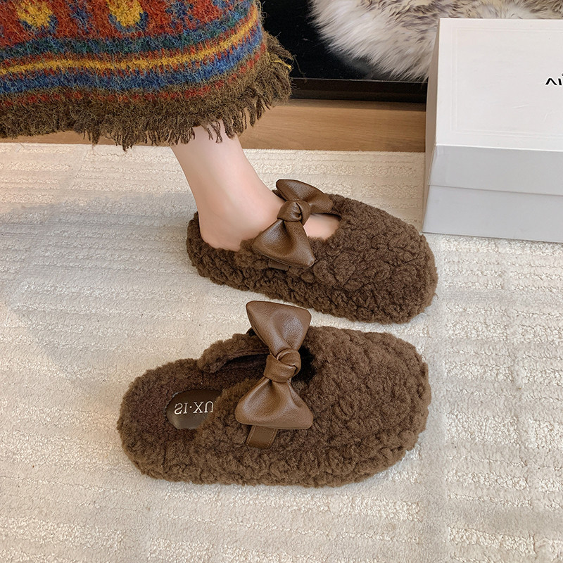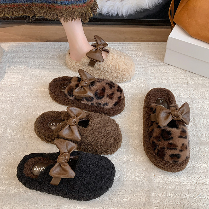 室内家居保暖防滑毛毛绒拖鞋 秋冬季 女冬天 女2025新款 蝴蝶结棉拖鞋
