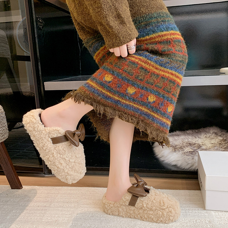 室内家居用厚底踩屎感棉拖 2025新款 蝴蝶结毛毛绒棉拖鞋 女士秋冬季