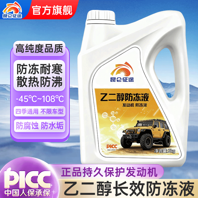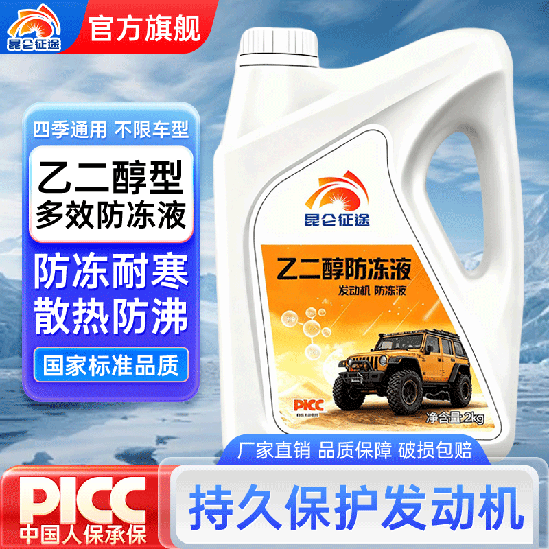 昆仑征途防冻液乙二醇型汽车冷却液水箱宝长效四季 通用红色绿色