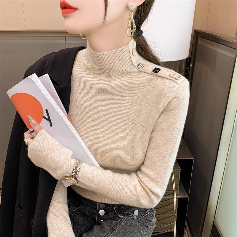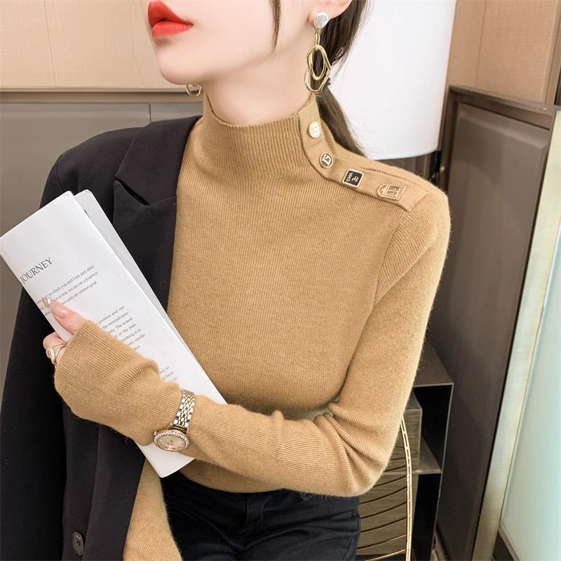 洋气修身 套头毛衣时尚 内搭针织1011r 女2025新款 秋冬半高领打底衫