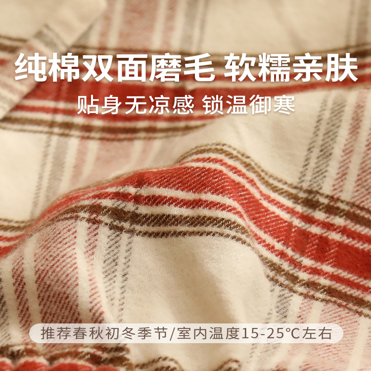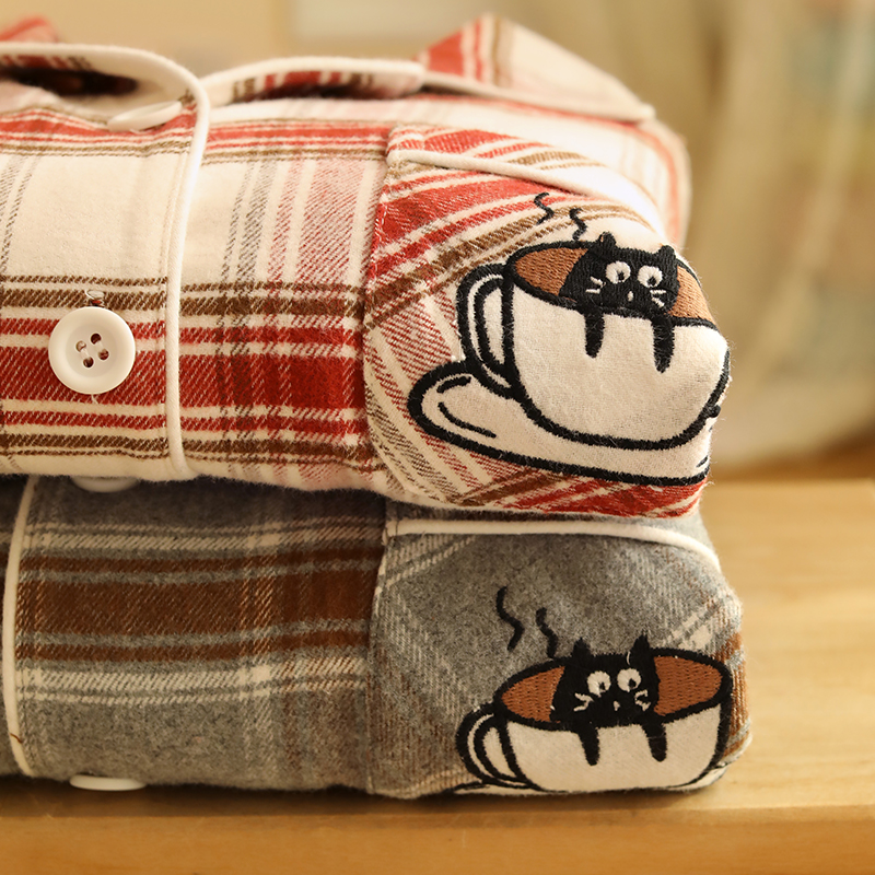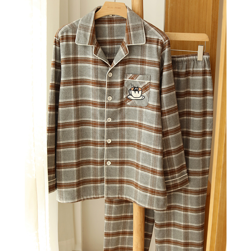 2025新款 可外穿 日系情侣睡衣纯棉双面磨毛格子卡通刺绣家居服套装