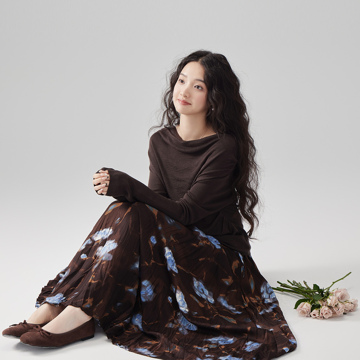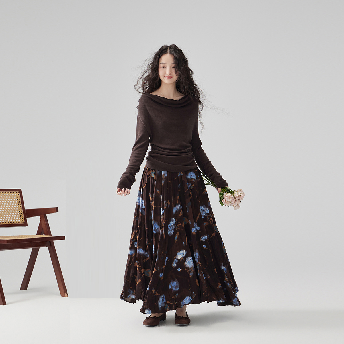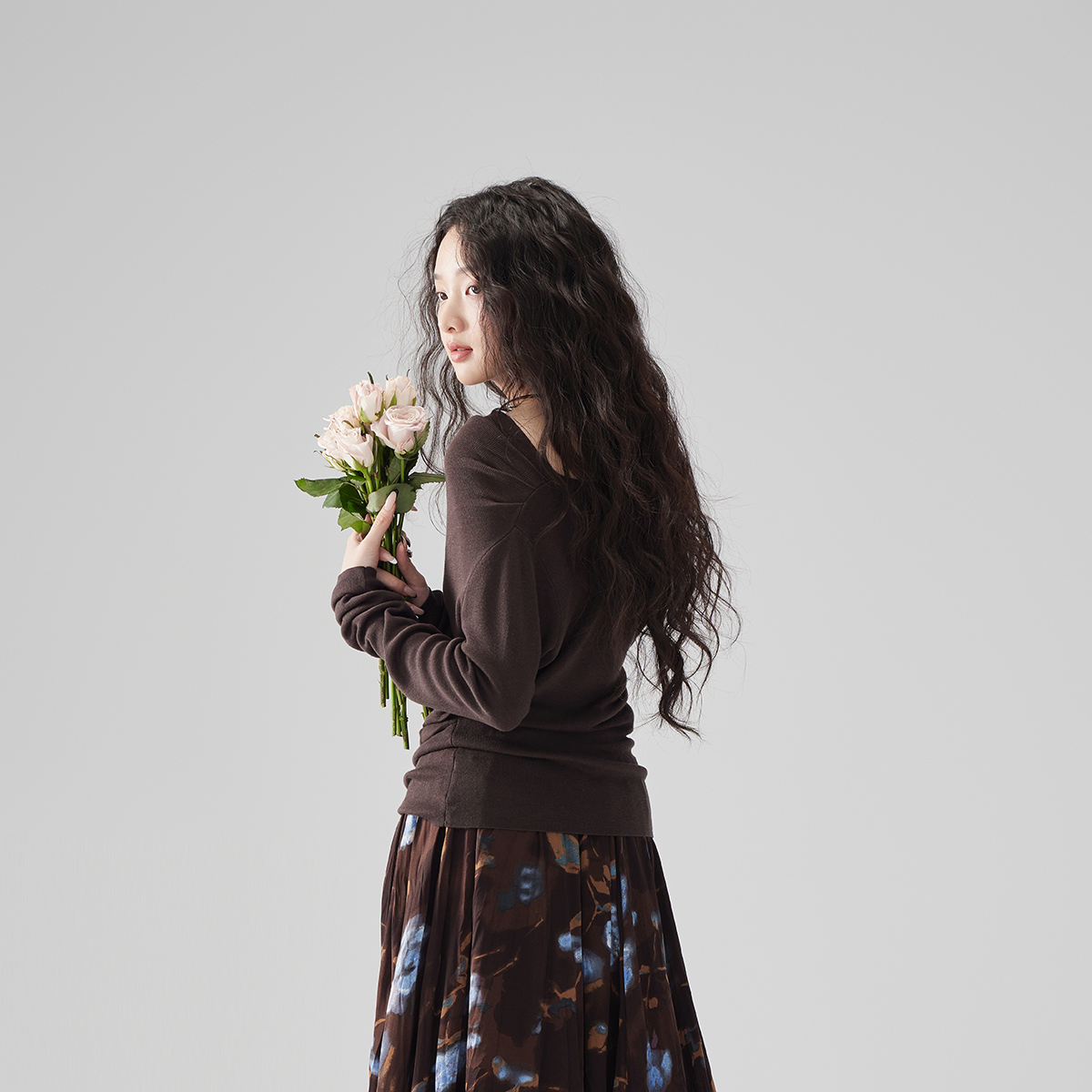 女高级感收腰打底美拉德上衣 荡领针织衫 one more2025春秋外穿长袖