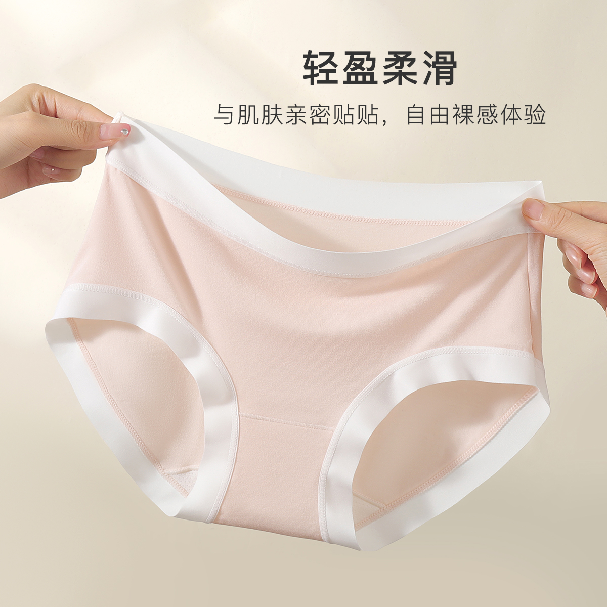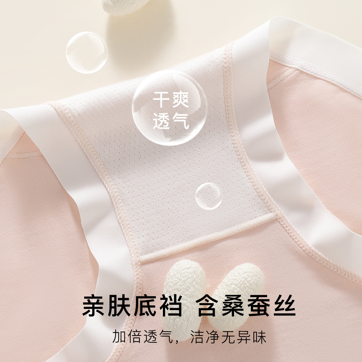 含桑蚕丝裆透气三角裤 梦芭蒂10A抑菌莫代尔无痕中腰女士内裤 4条装