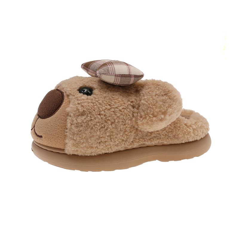可爱蝴蝶结小熊室内家居防滑毛绒保暖包头拖鞋 冬季 女款 厚底棉拖鞋
